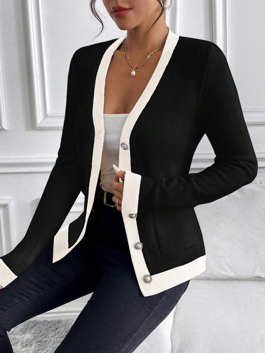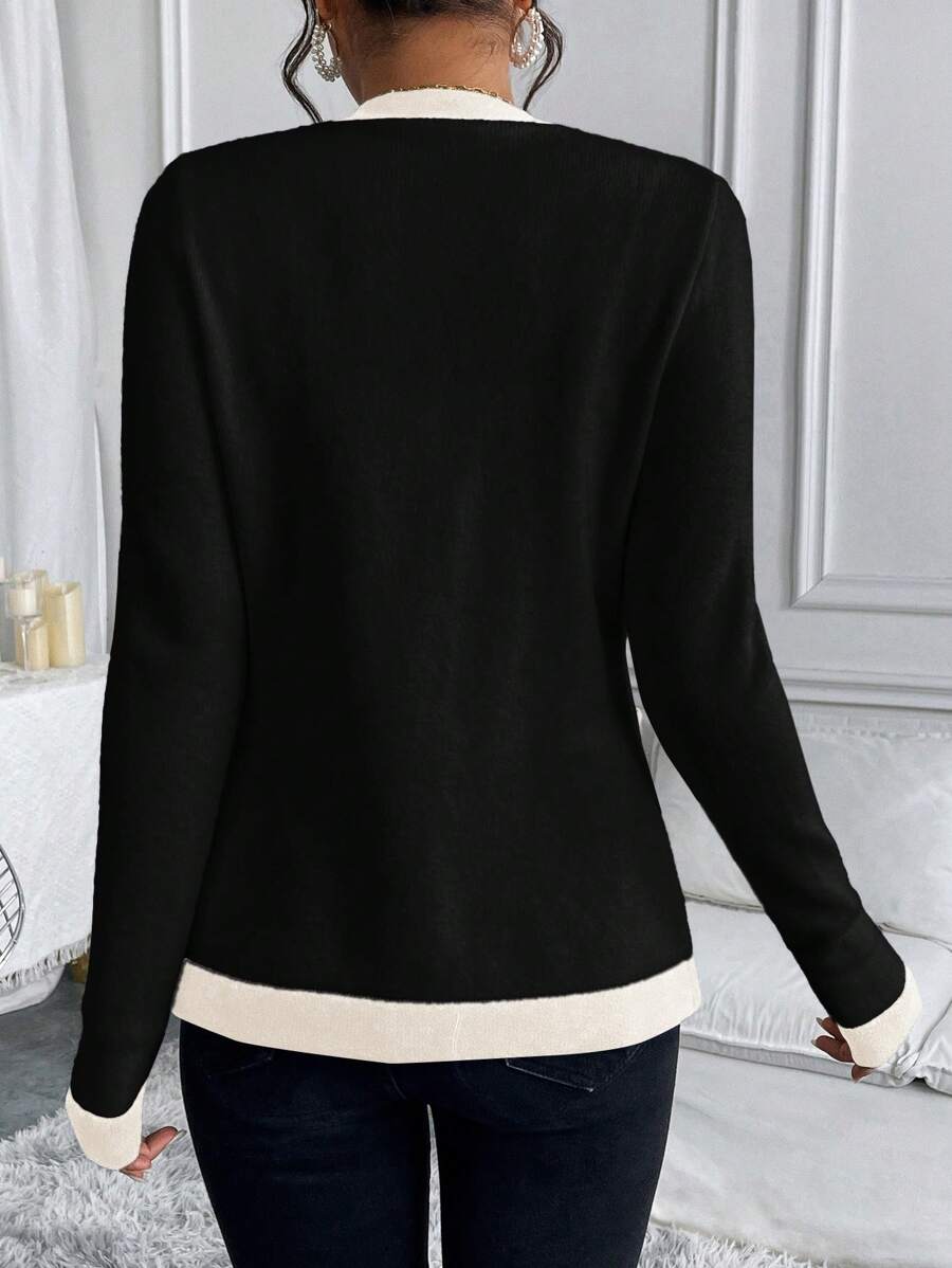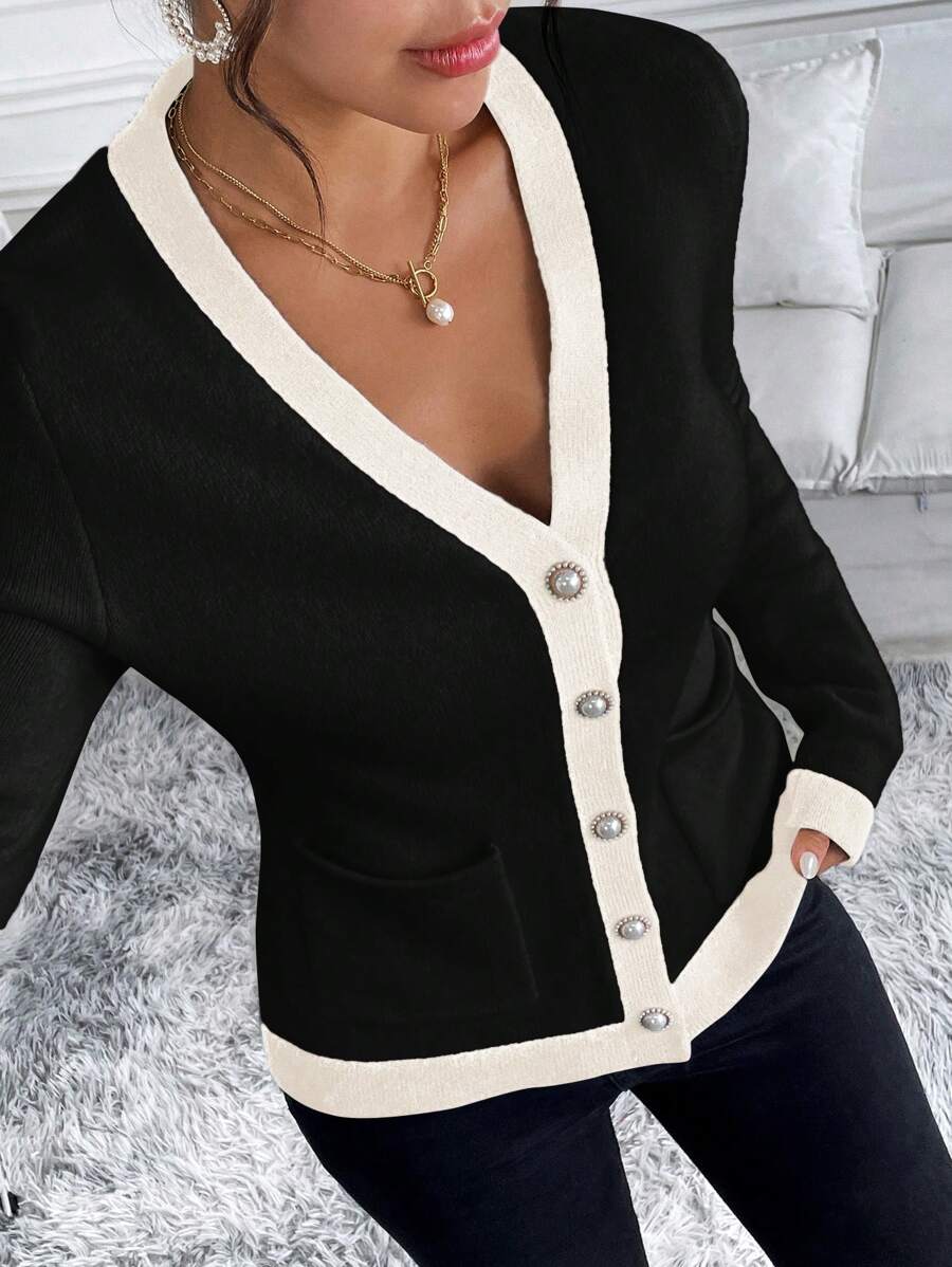 SHEIN Clasi Women's Winter Classic Black And White Contrasting Color Elegant Pearl quantity
