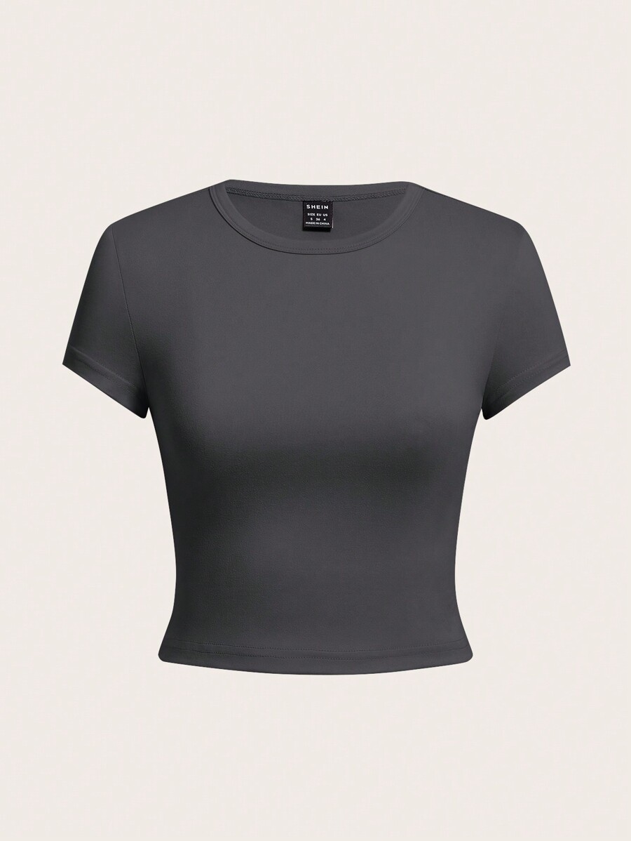 SHEIN Comfortcana 4pcs/Set Women's Casual Plain Fitted Cropped Round Neck Short Sleeve T-Shirt, Summer quantity