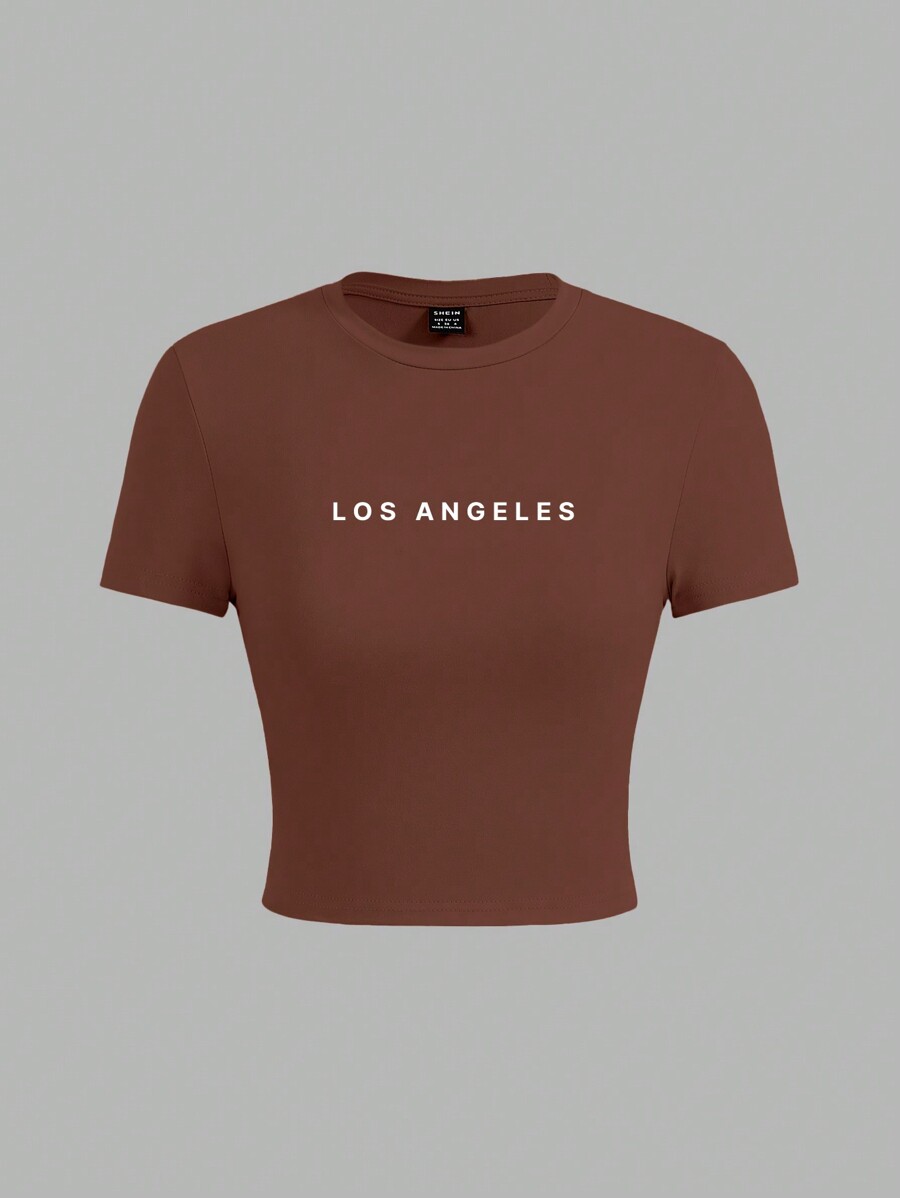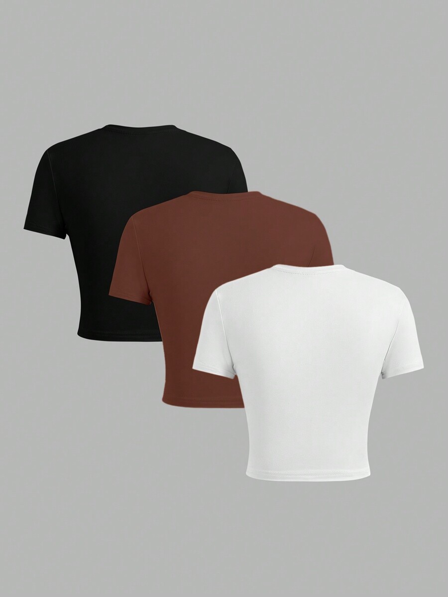SHEIN EZwear 3pcs/Set Casual Minimalist MLANO English Text Print Crew Neck Short Sleeve Cropped T-Shirts For Women, Summer