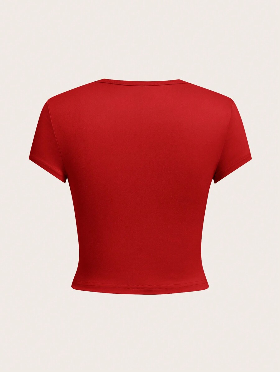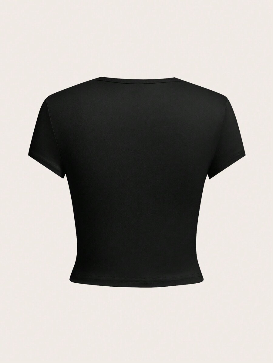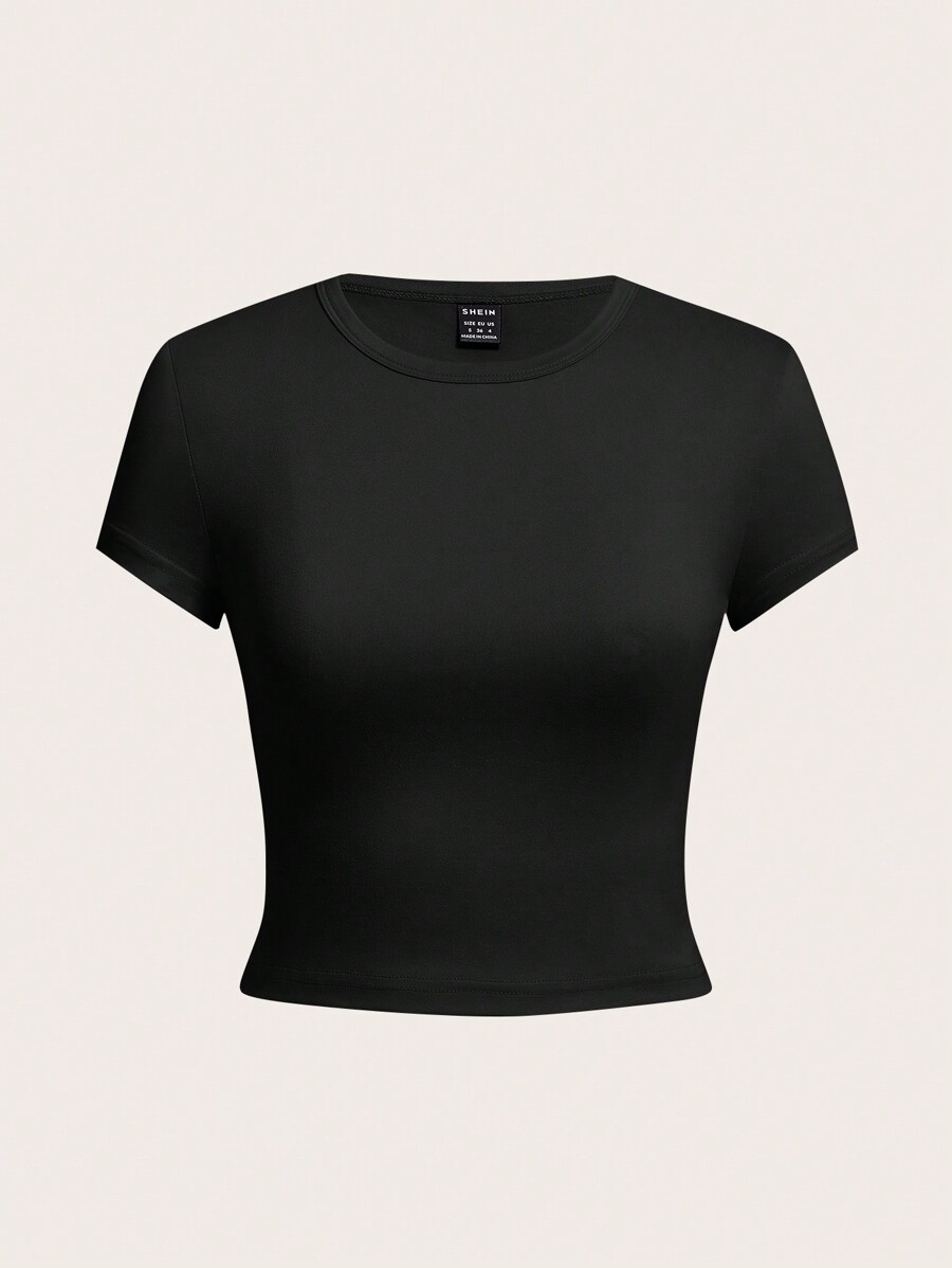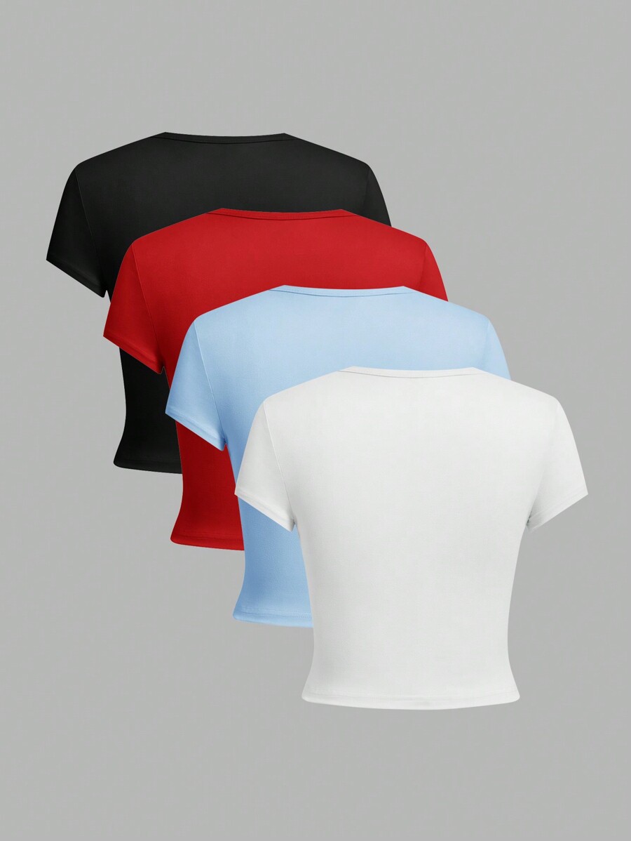 SHEIN EZwear 4pcs Pack Round Neck Short Sleeve Fitted Women T-Shirts For Summer