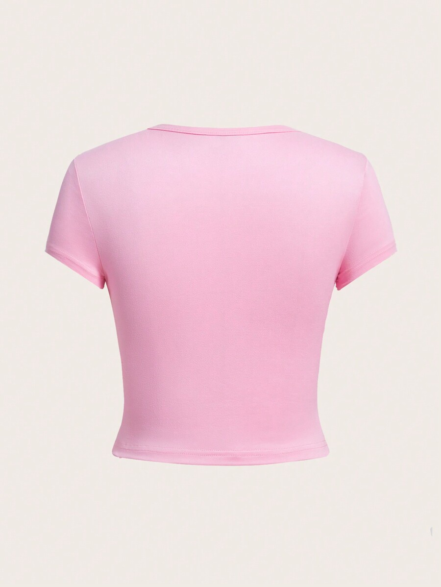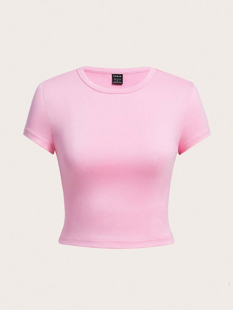 SHEIN EZwear 4pcs/Set Round Neck Short Sleeve Tight Fit Women T-Shirts, Casual For Summer