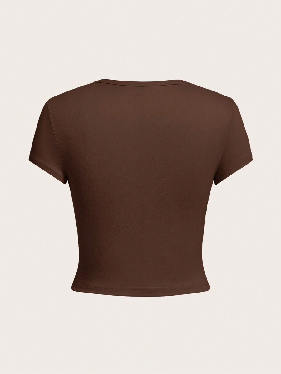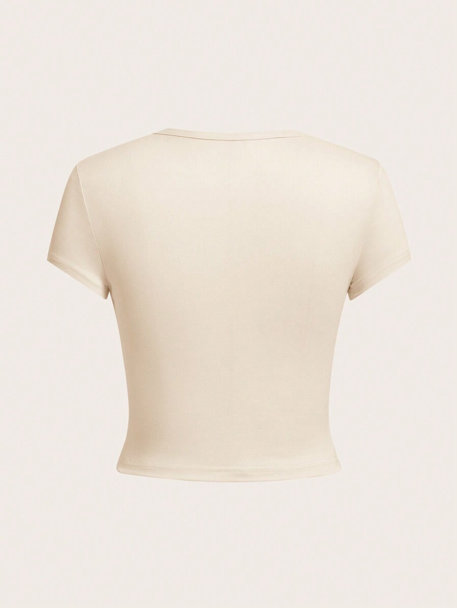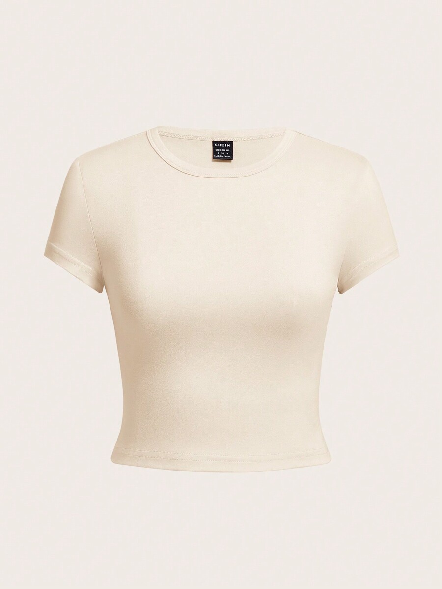 SHEIN EZwear 4pcs/Set Women Casual Solid Color Cropped Round Neck Short Sleeve Fitted T-Shirts, Summer
