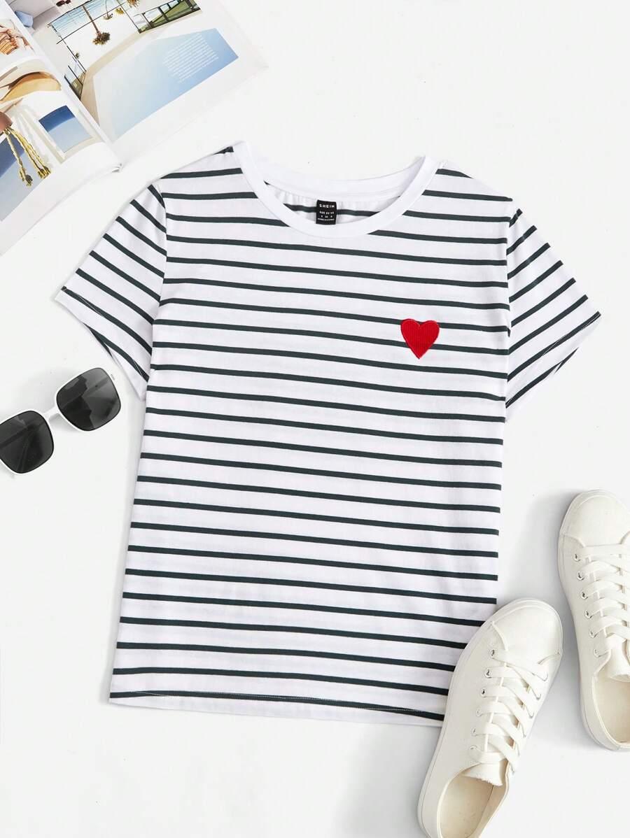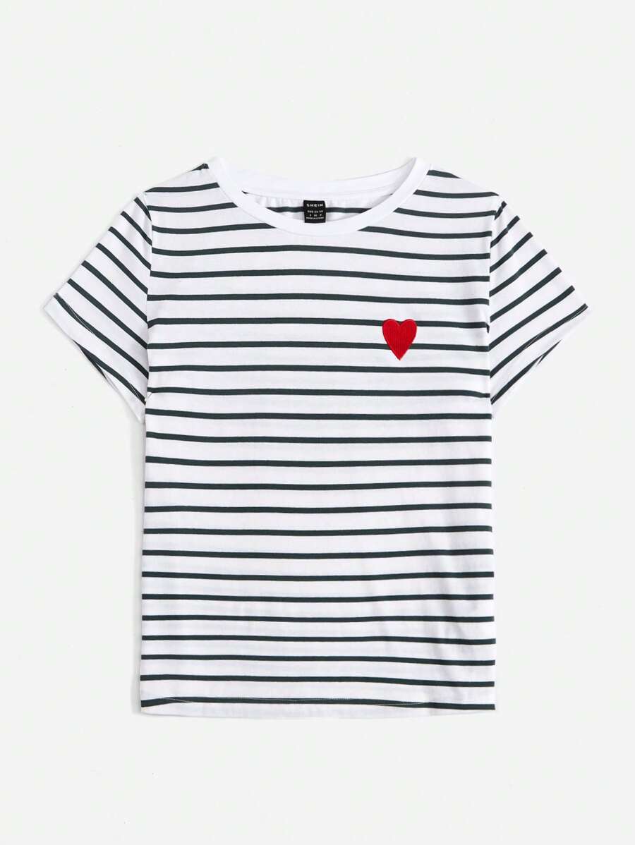 SHEIN EZwear Striped & Heart Print Tee quantity