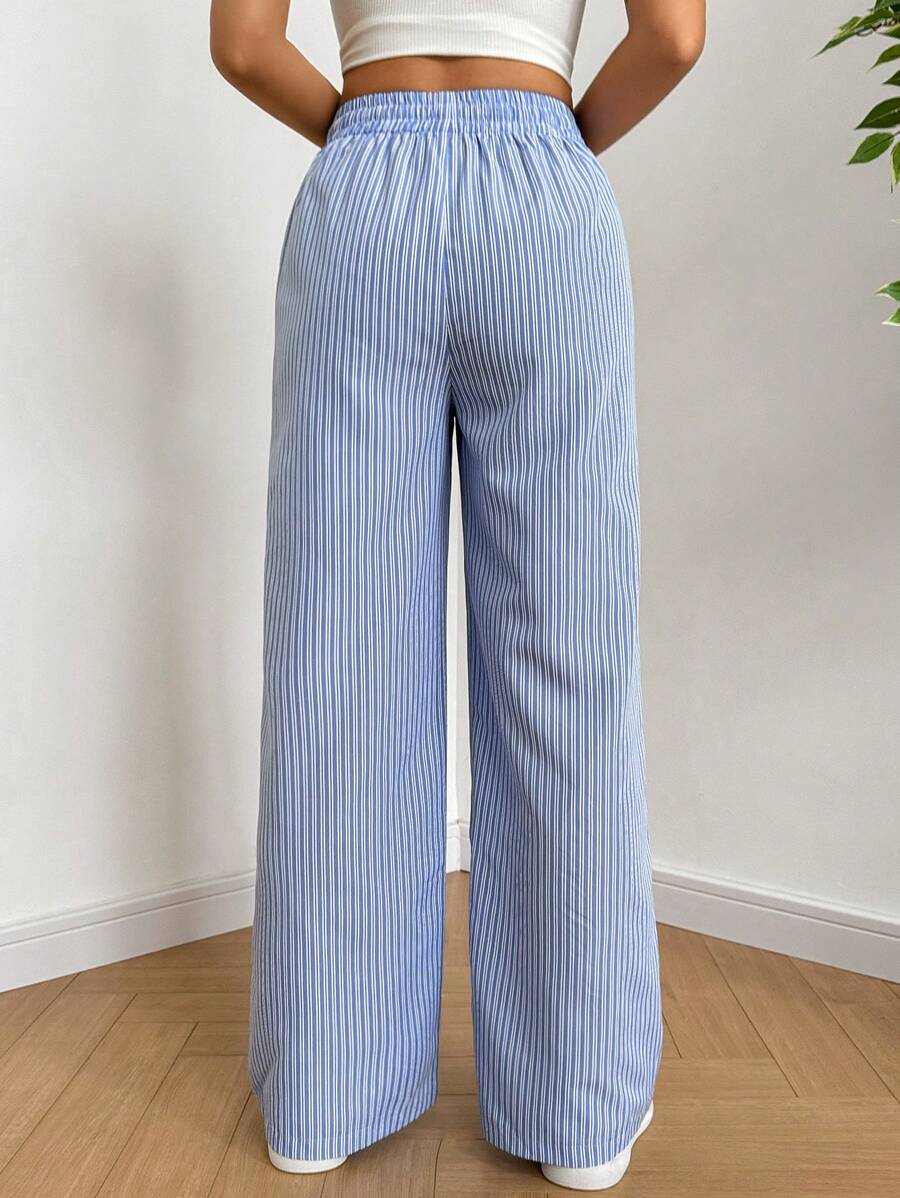 / SHEIN EZwear Women’s Belted Striped Casual Loose Pants For Spring/Summer At Home