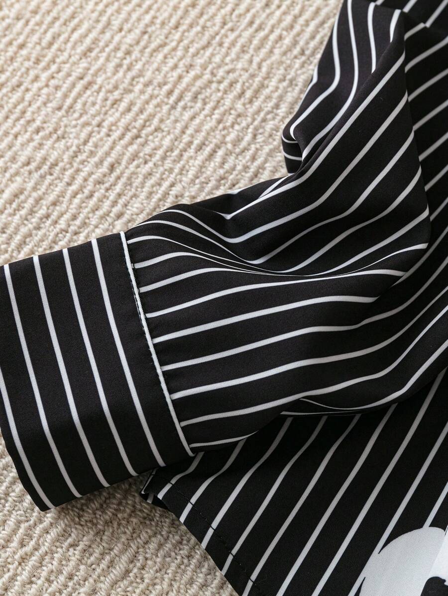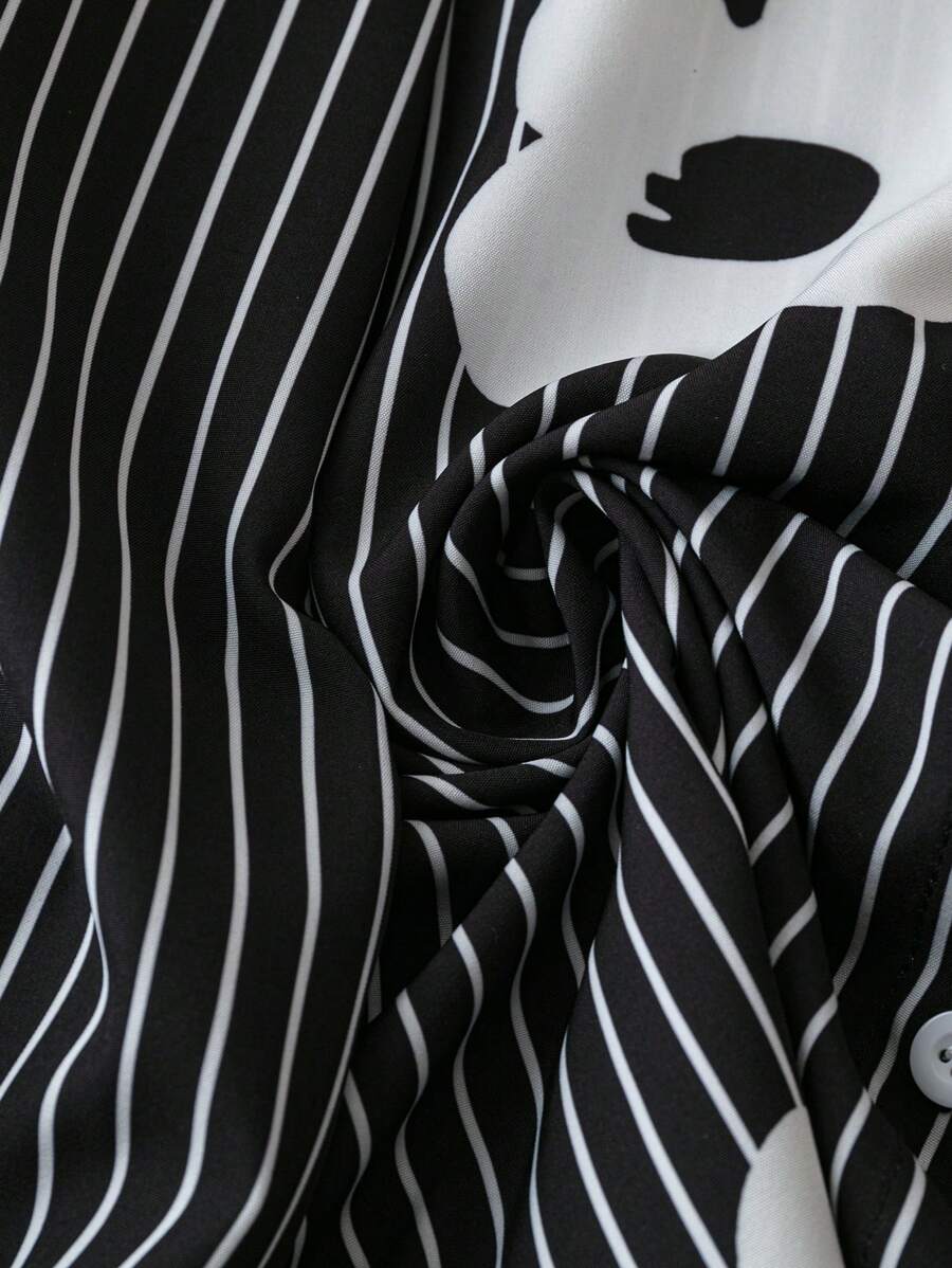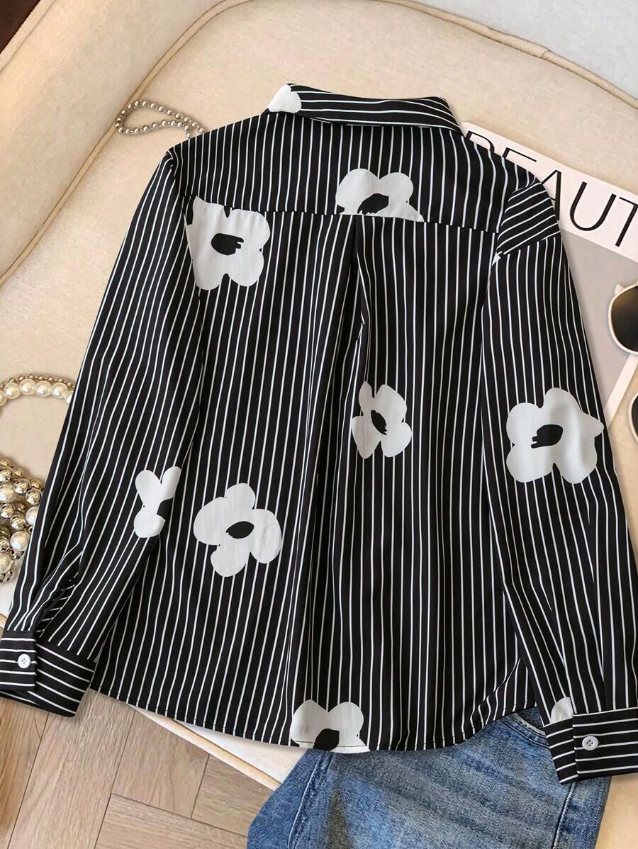 SHEIN Franclia Women’s Floral & Striped Long Sleeve Single-Breasted Shirt, Fashionable For Autumn