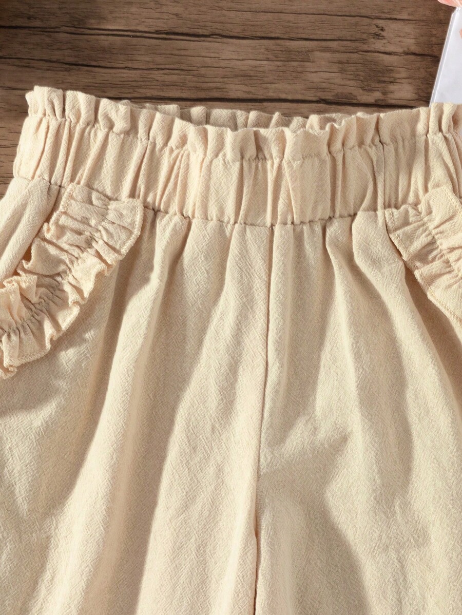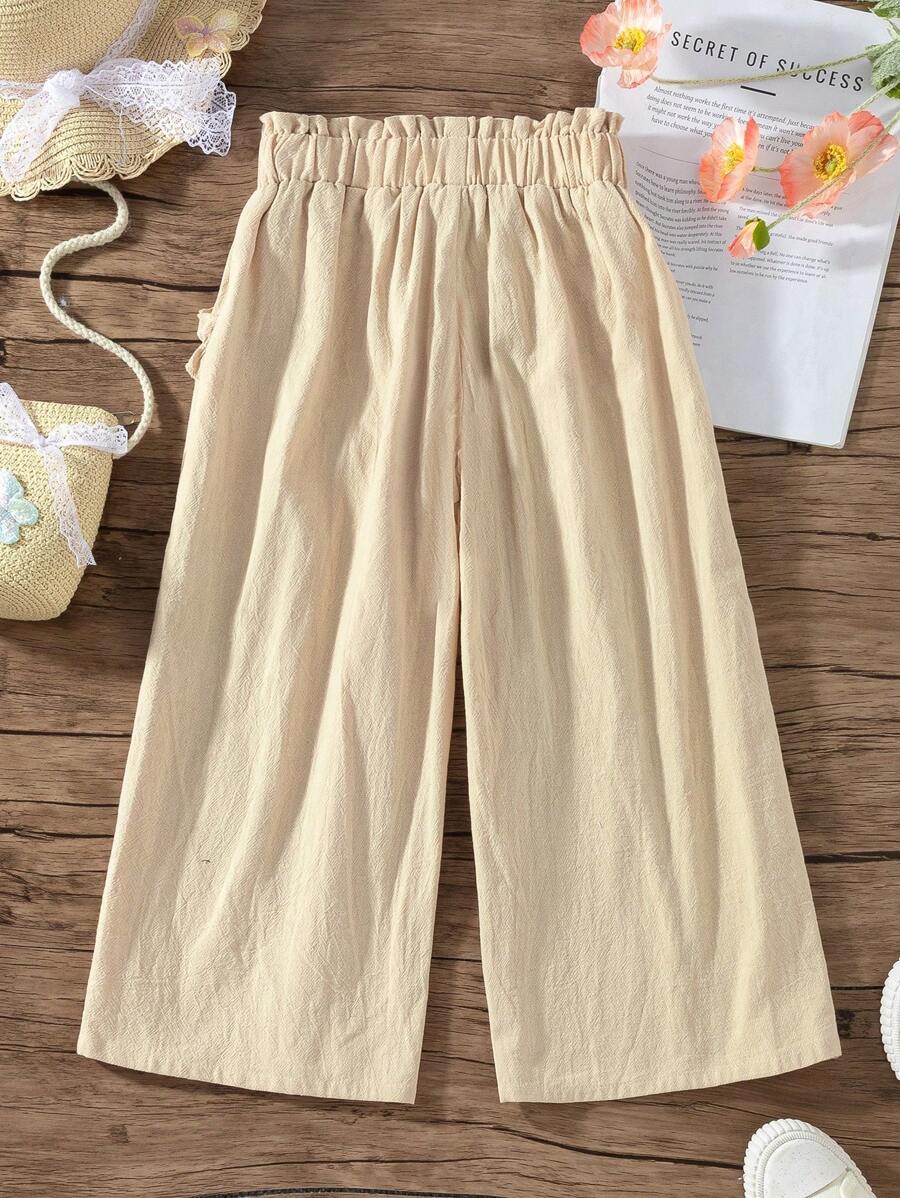 SHEIN Girls Casual All-Match Linen Blue Flared Wide-Leg Pants With Ruffle Hem, Suitable For Summer, Autumn, Winter, Outdoor, Picnic, Daily Wear quantity