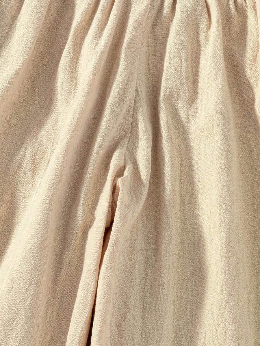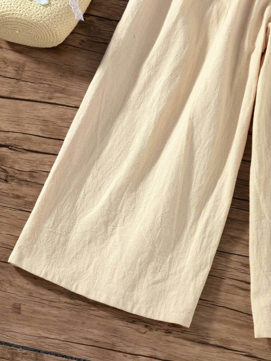 / SHEIN Girls Casual All-Match Linen Blue Flared Wide-Leg Pants With Ruffle Hem, Suitable For Summer, Autumn, Winter, Outdoor, Picnic, Daily Wear
