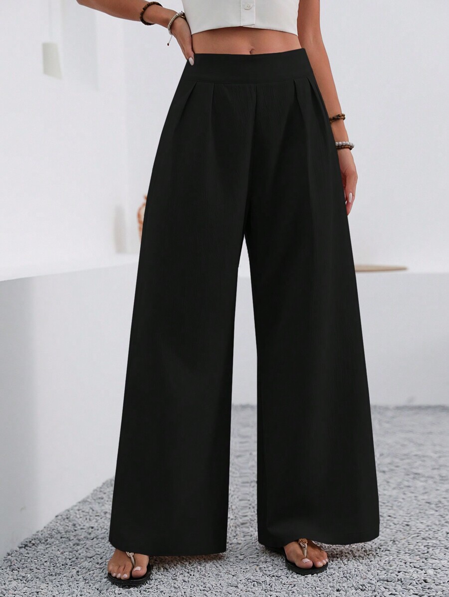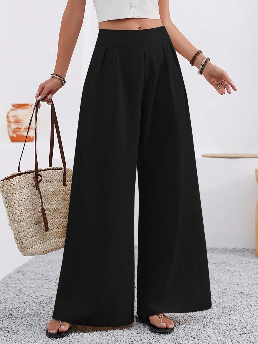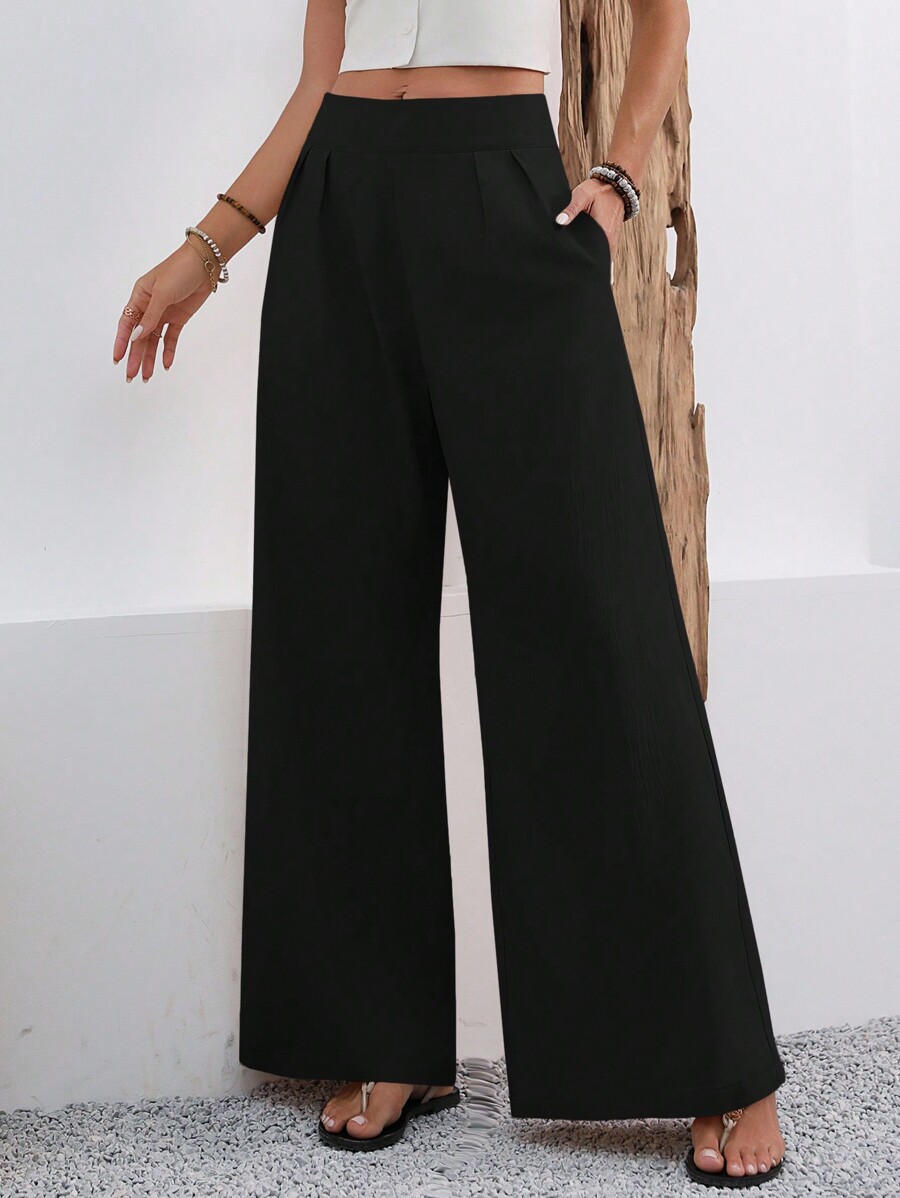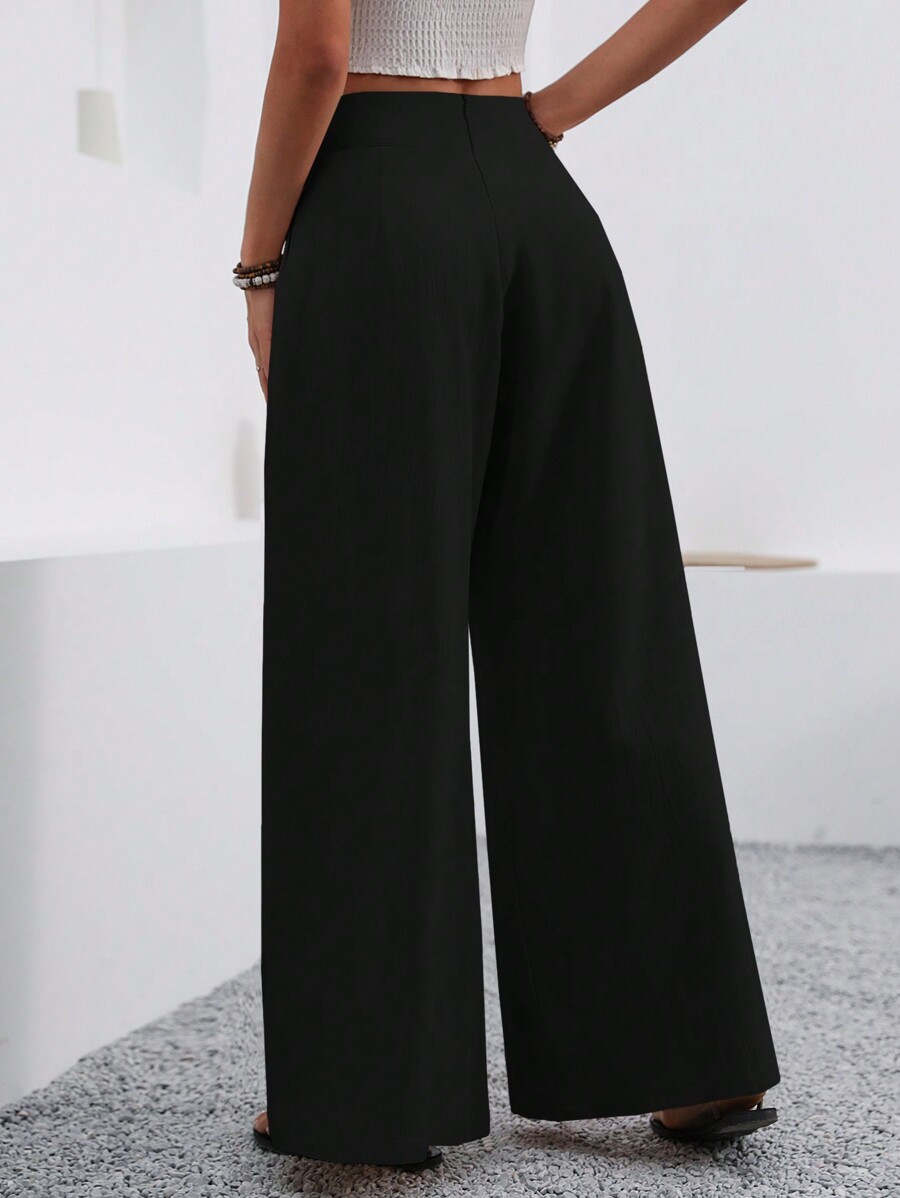SHEIN Holidaya Solid Color Loose Wide Leg Elegant Pants With Pocket