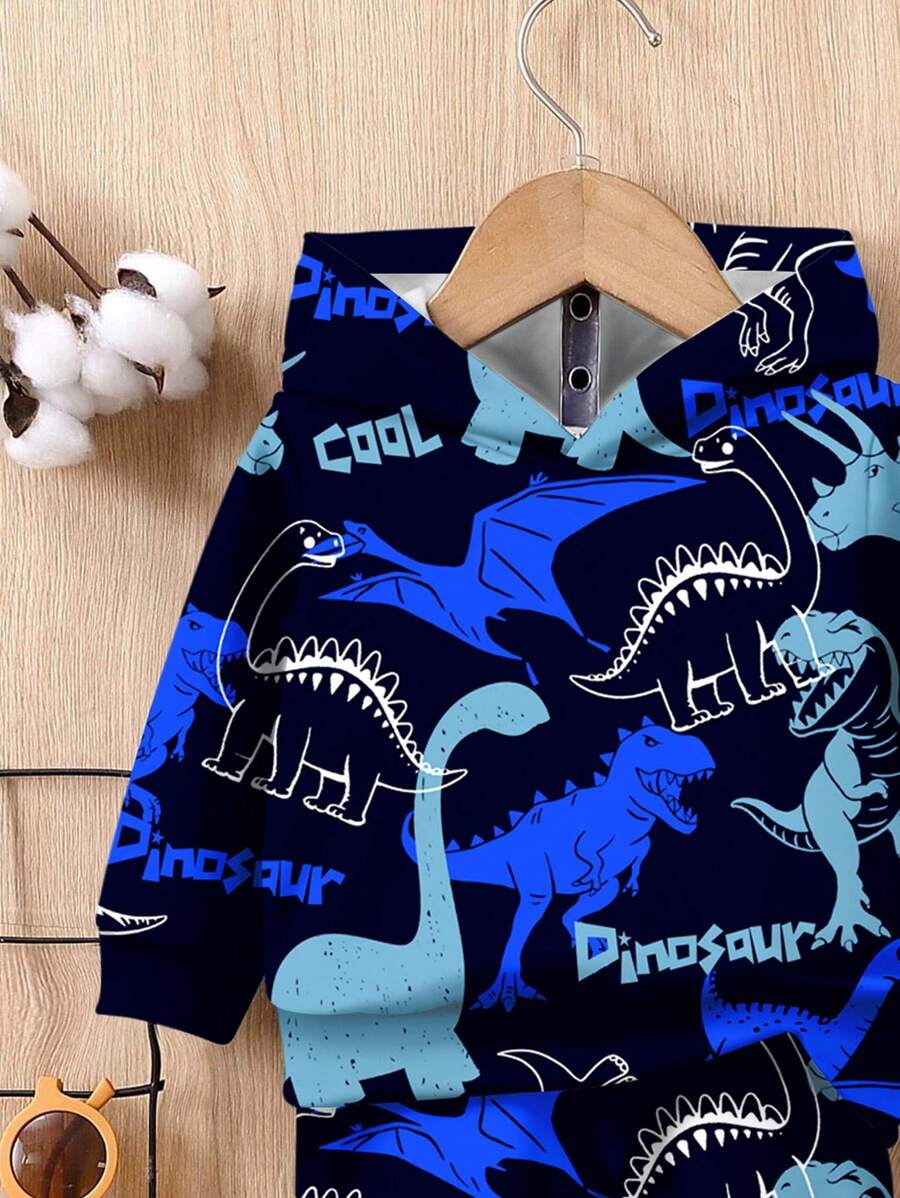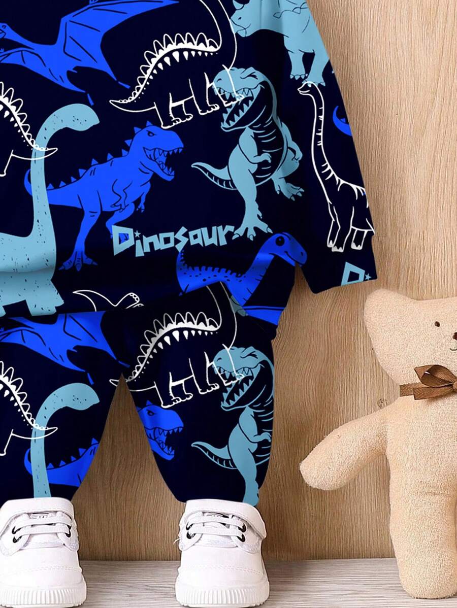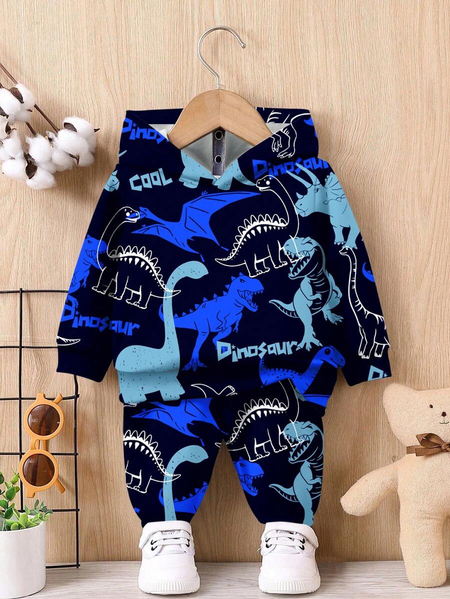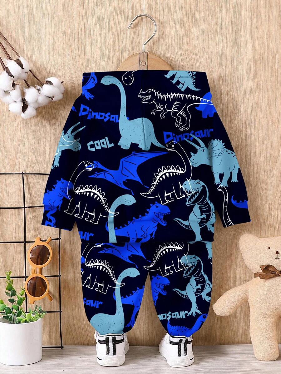 / SHEIN Infant/Toddler Boy Casual Minimalist Cartoon Dinosaur Pattern Loose Comfy Knitted Hoodie Sweatshirt & Pants Set, Suitable For Autumn/Winter