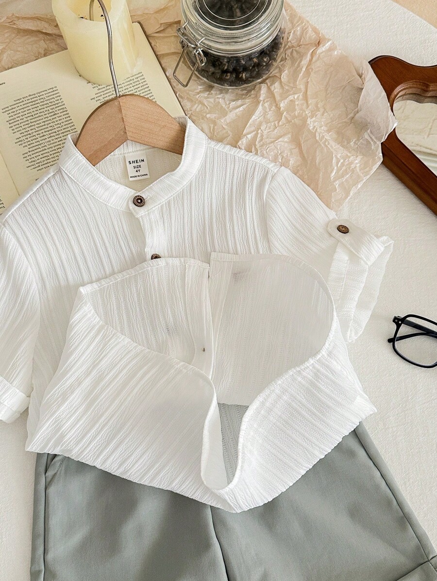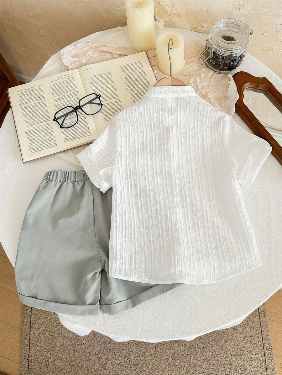 SHEIN LMoss Kids Young Boy Casual Academy Style Comfortable Breathable Shirt And Shorts Set