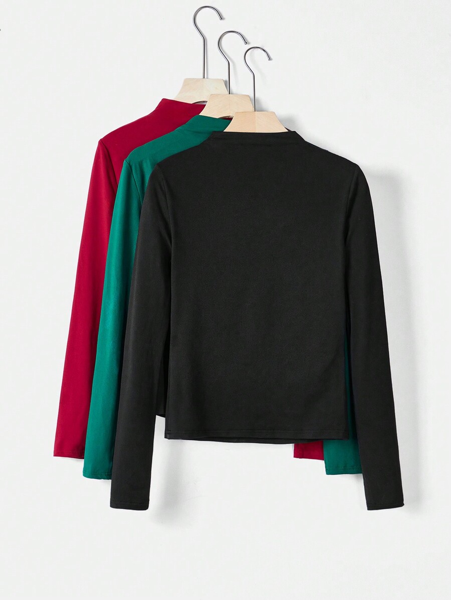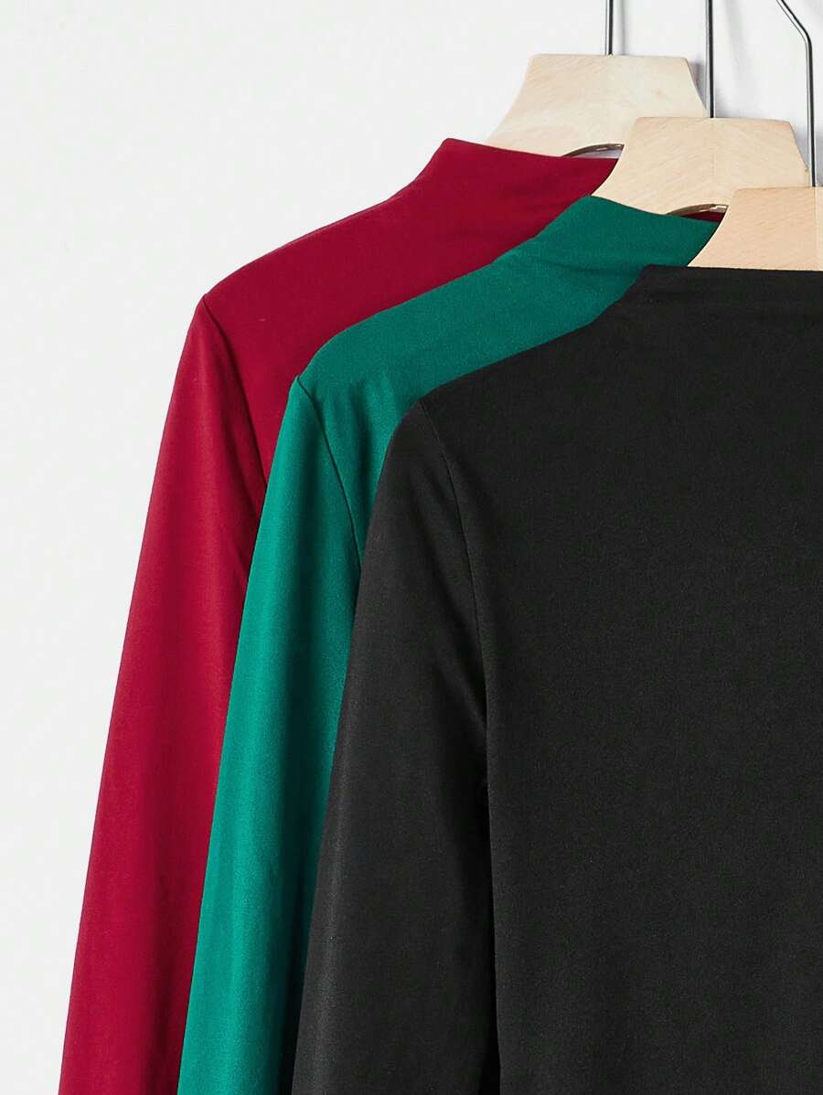 SHEIN LUNE 2025 Spring New 3 Color Basic Casual Sports Minimalist Undershirt T-Shirt For Women, Red, Green, Black