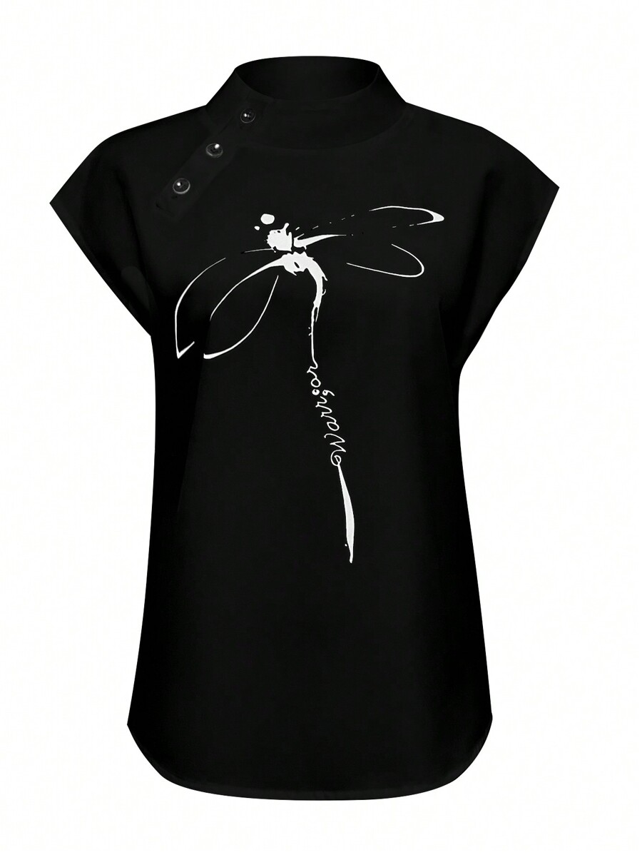 / SHEIN LUNE Round Neck Button Design Casual And Simple Ladies’ Shirt