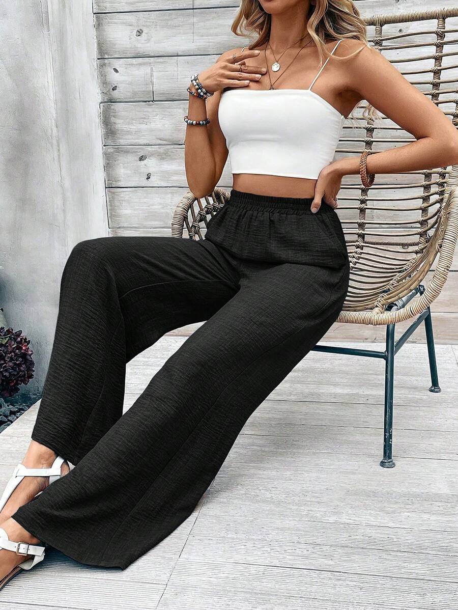 SHEIN LUNE Solid Wide Leg Pants For Summer Vacation