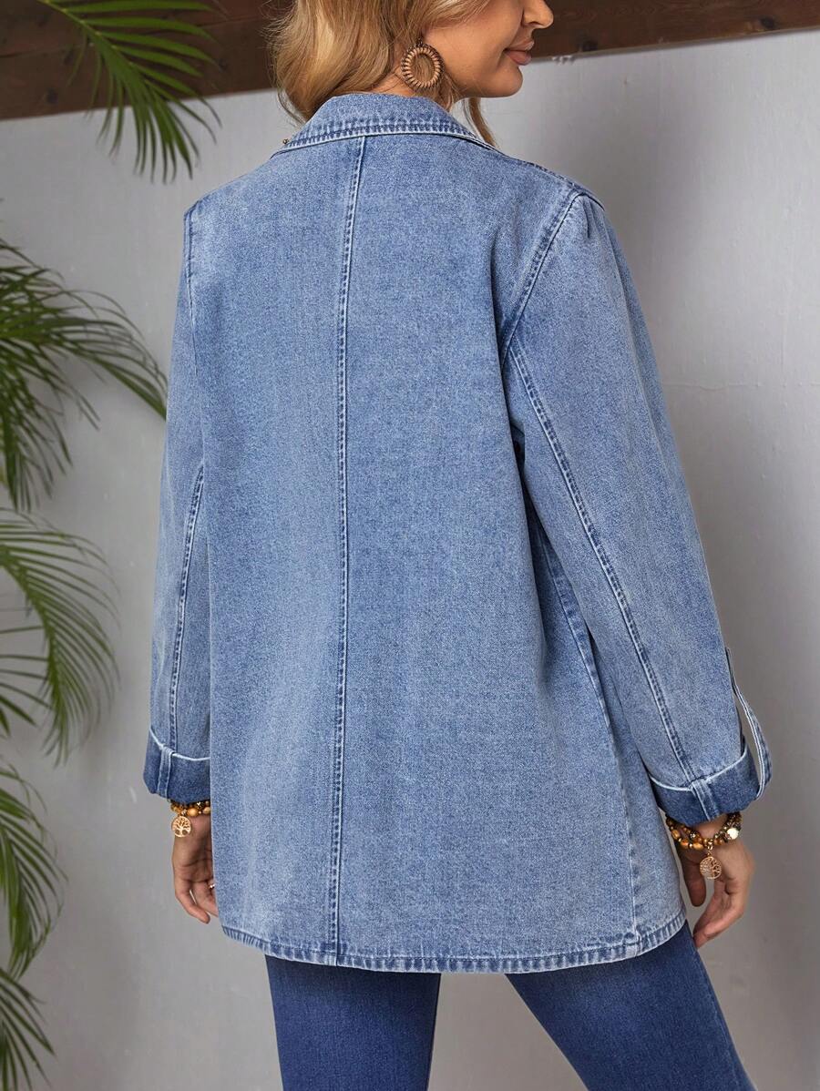 / SHEIN LUNE Turn-Down Collar Rolled Sleeve Denim Jacket