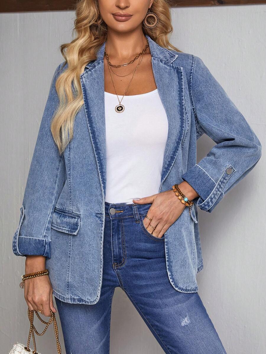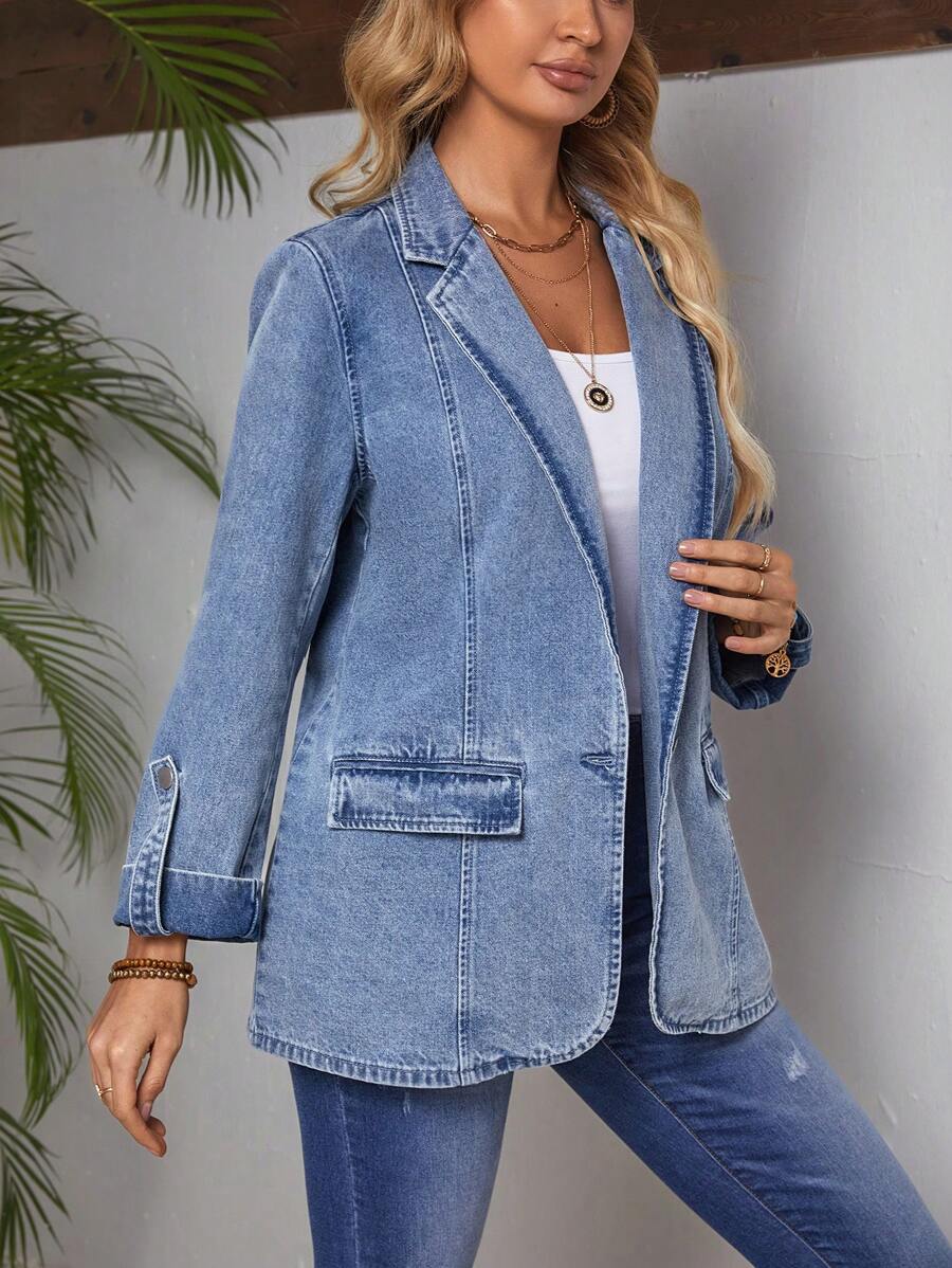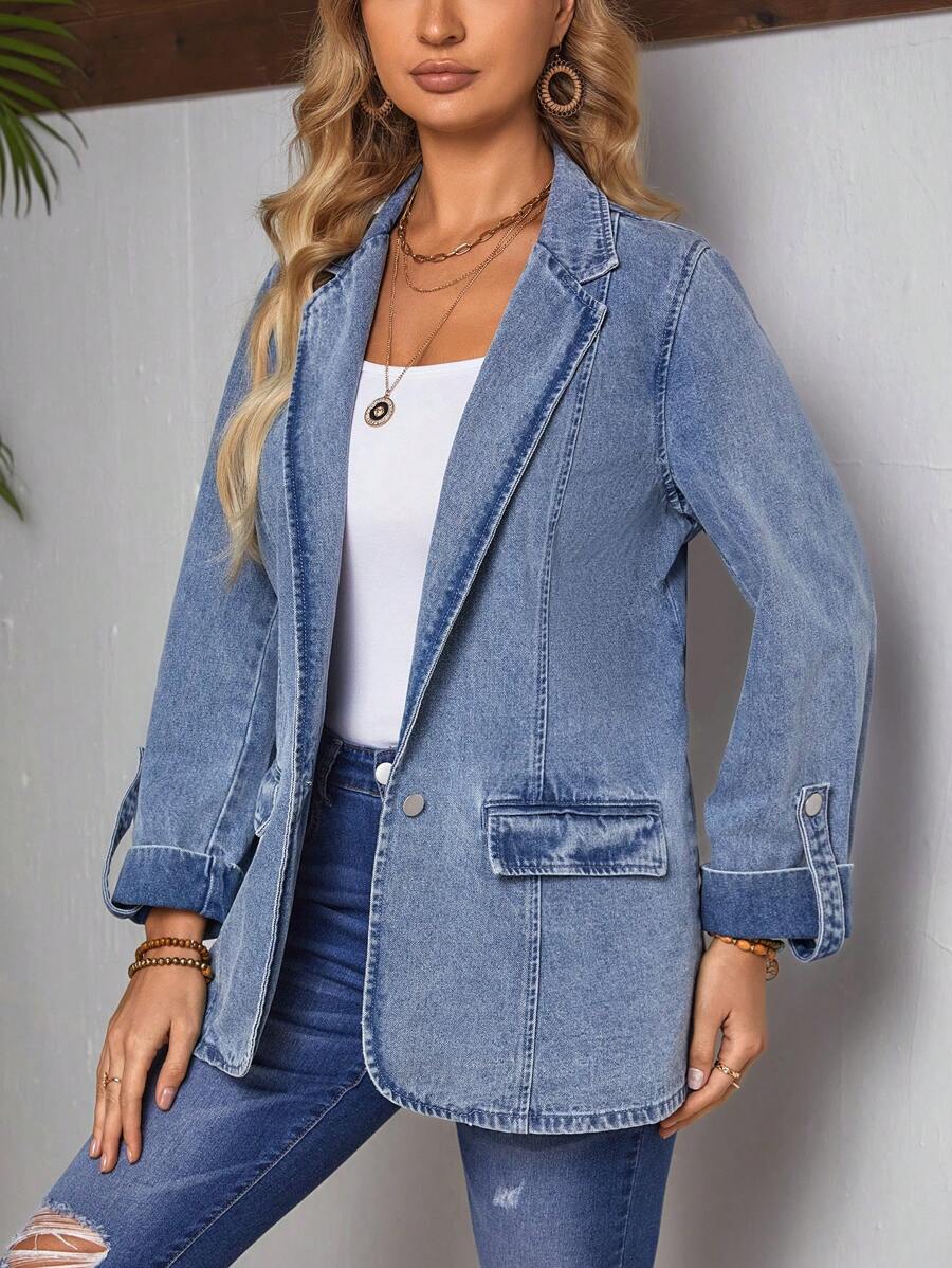 SHEIN LUNE Turn-Down Collar Rolled Sleeve Denim Jacket