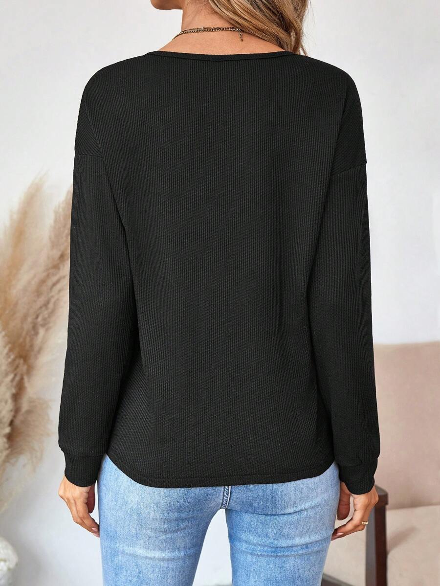 SHEIN LUNE Women’s Casual V-Neck Long Sleeve T-Shirt, Solid Color, Autumn