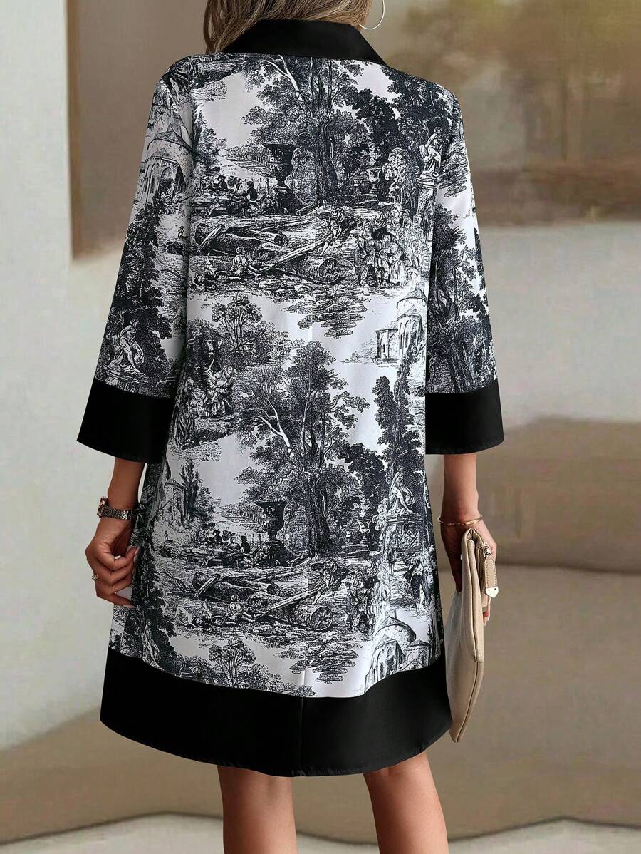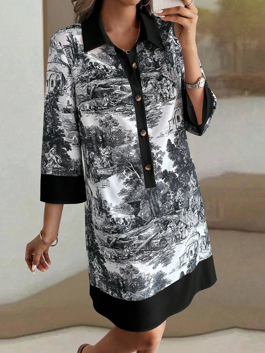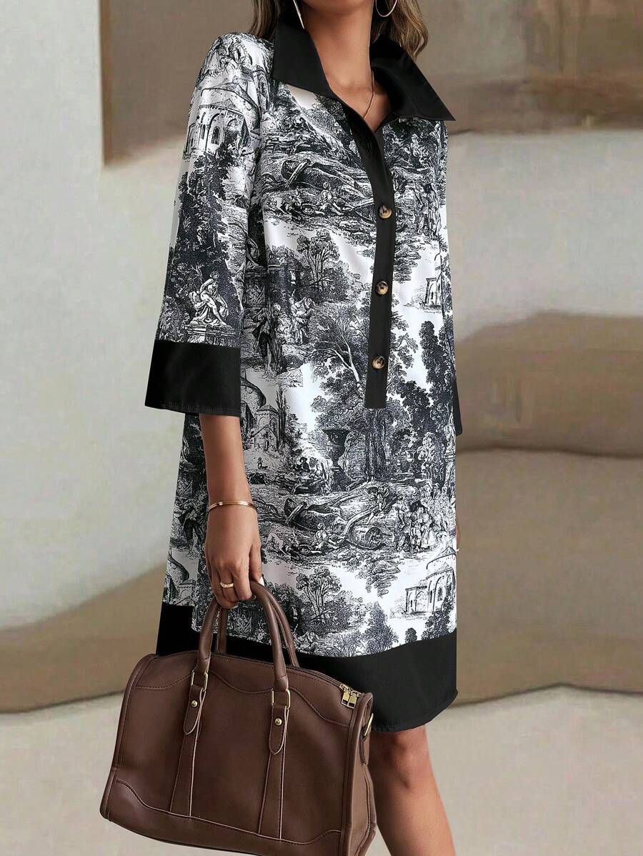 / SHEIN LUNE Women’s Solid Color Button Front Long Sleeve Mini Dress, Random Floral Print