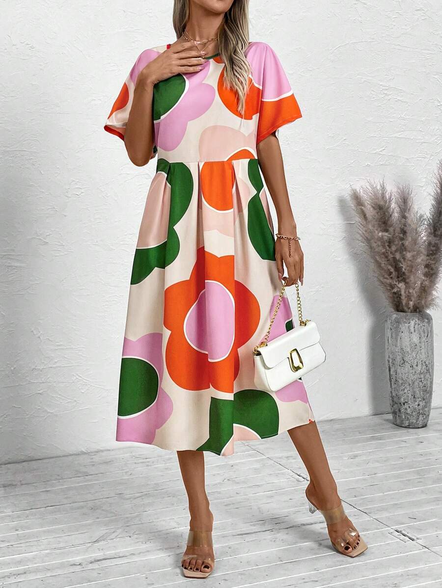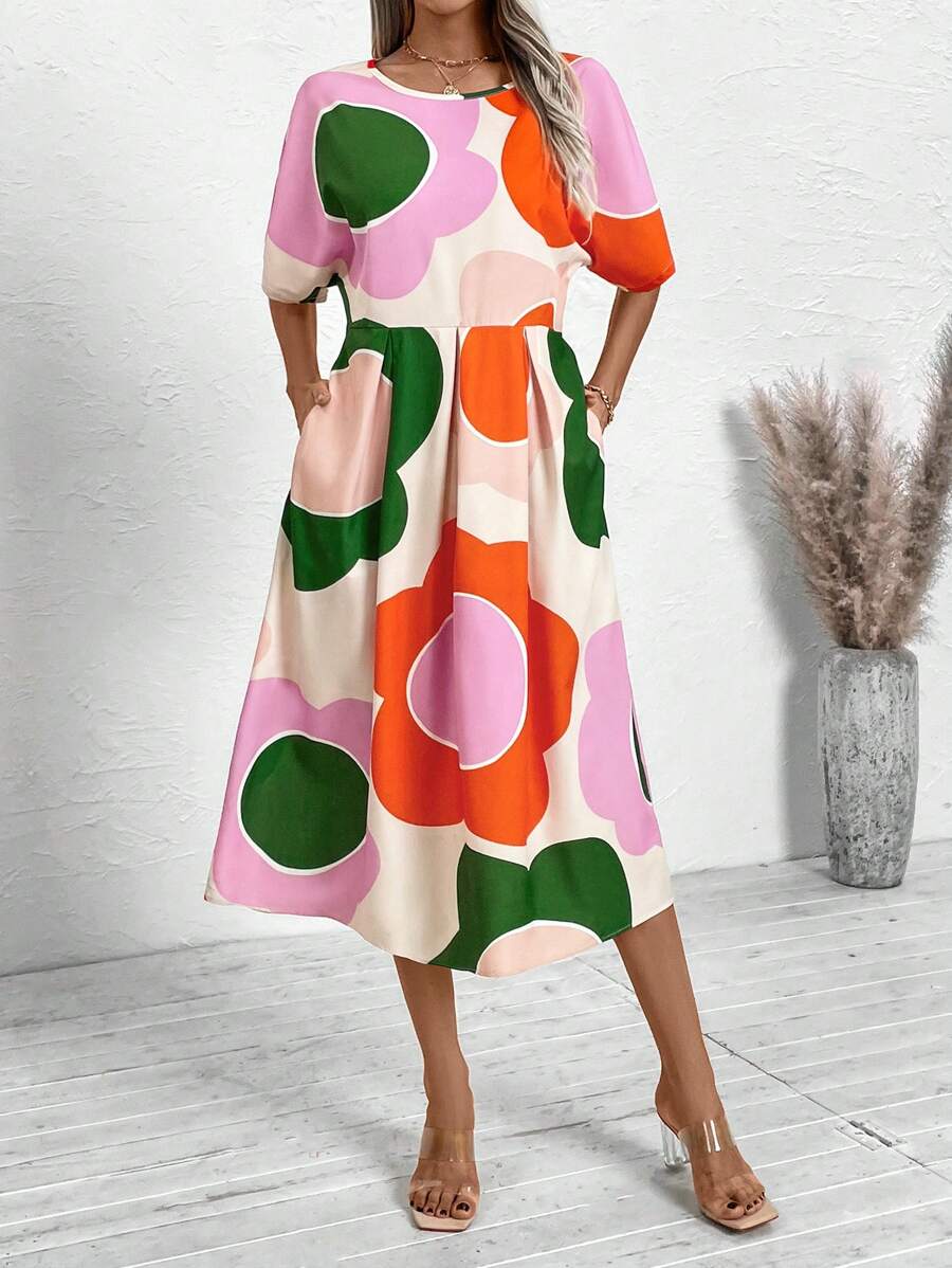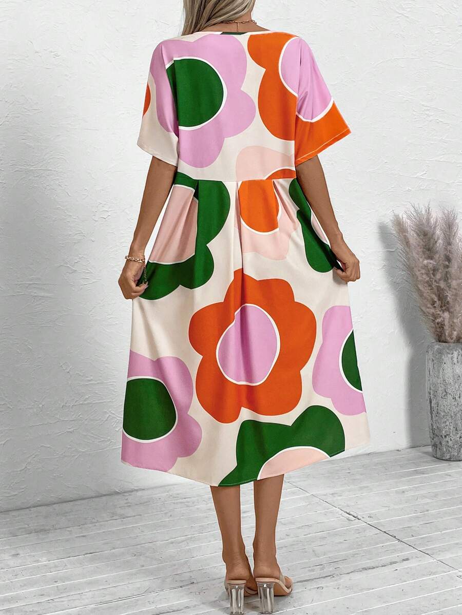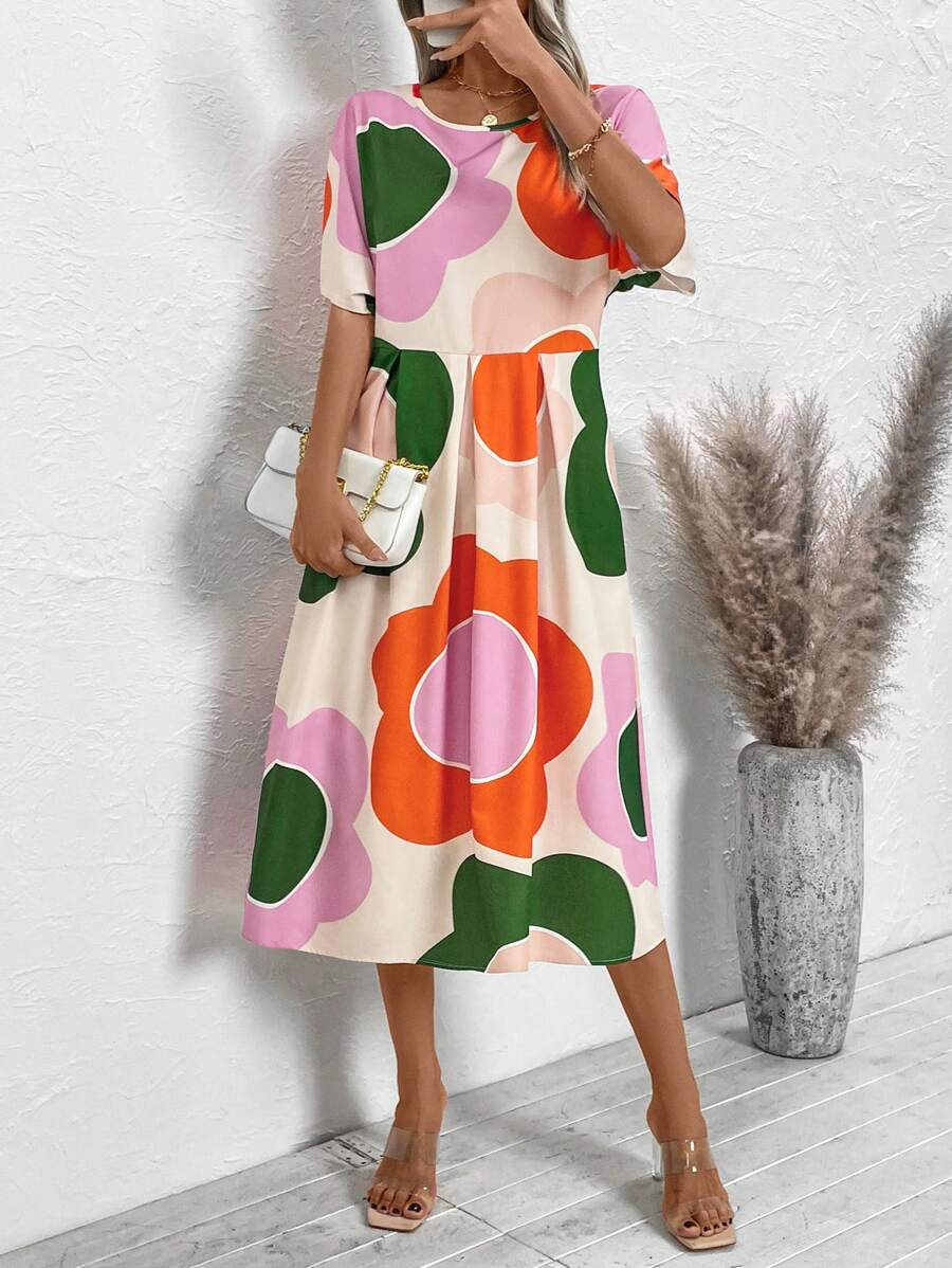 / SHEIN LUNE Woven Printed Midi Flowy Loose Dress + Printed Asymmetric Hem For Women