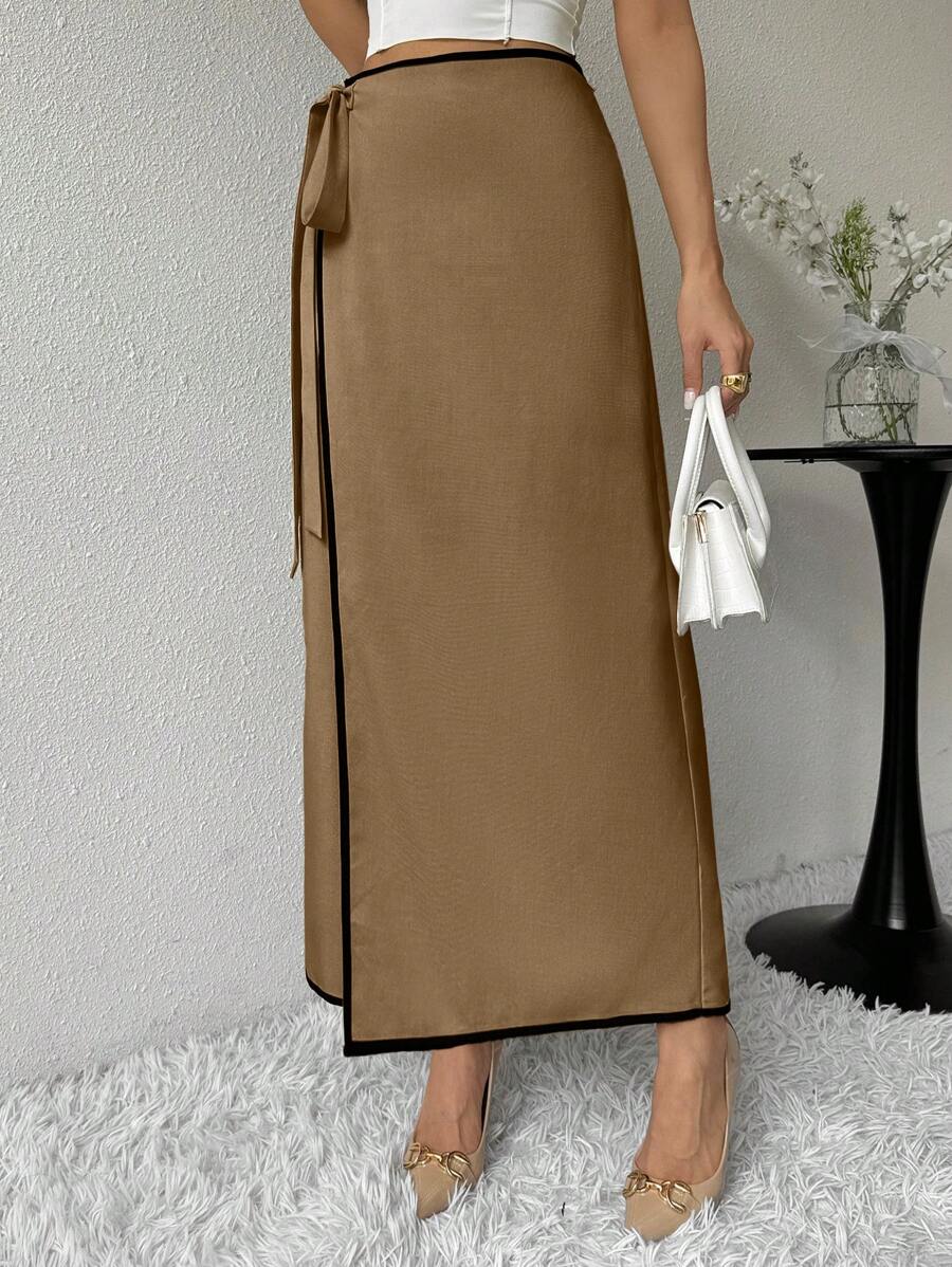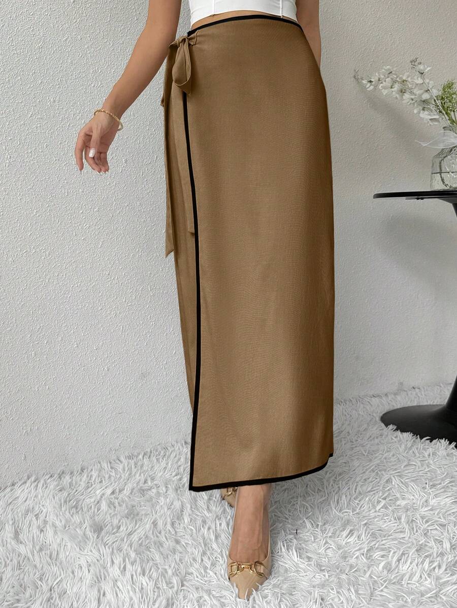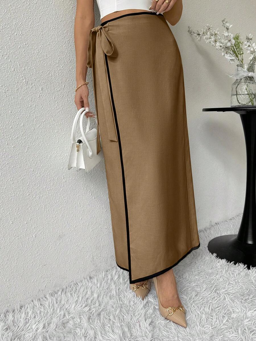 / SHEIN Modely Women’s Casual Contrast Color Trim Tie Wrap Around Skirt