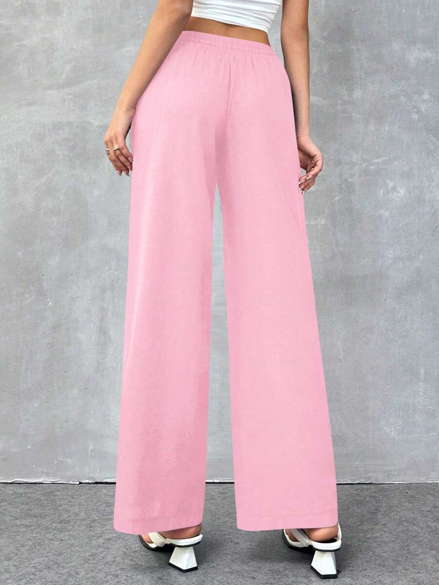 SHEIN MOOSTA Solid Color Drawstring Waist Pocket Wide Leg Casual Pants quantity