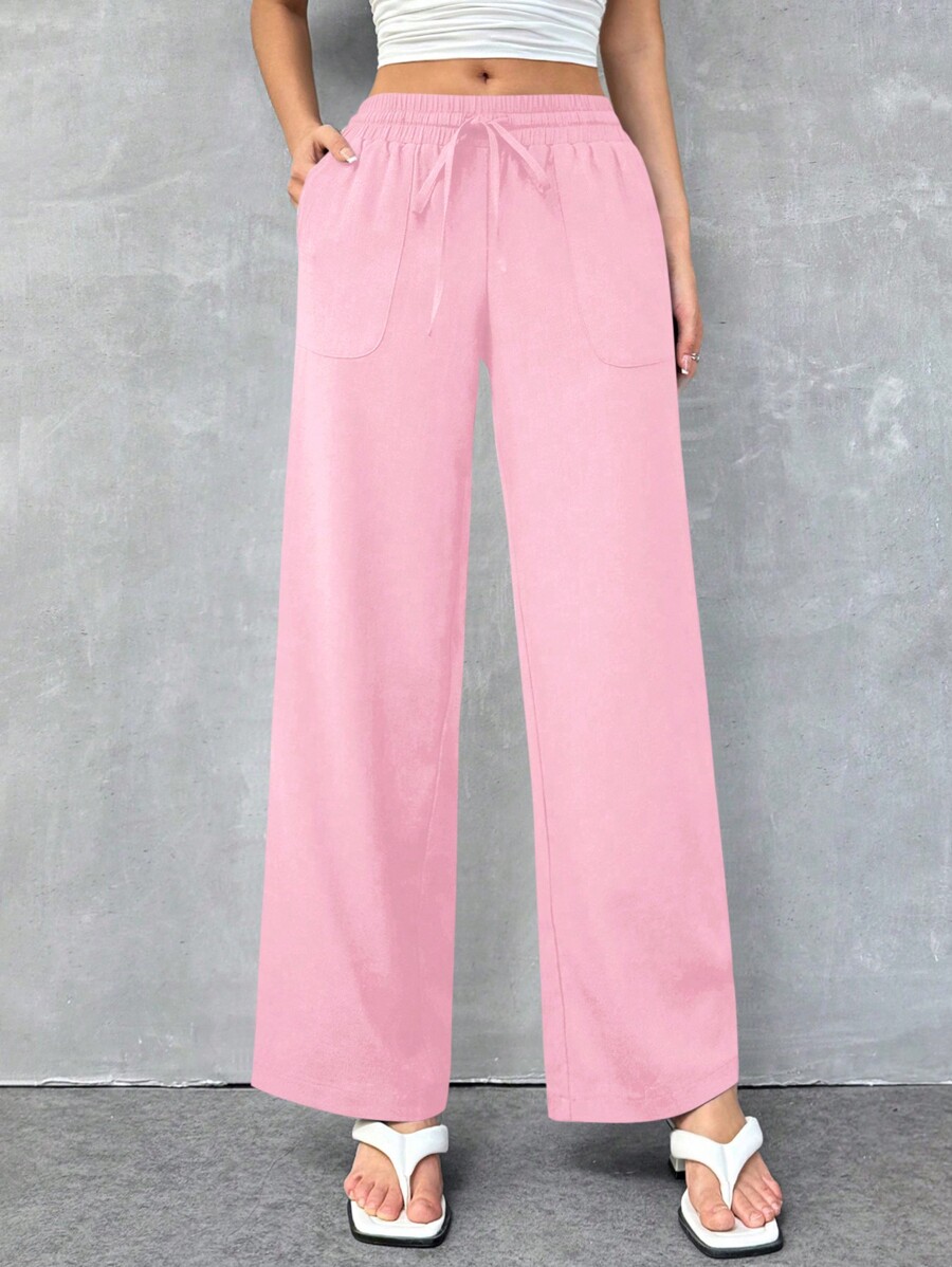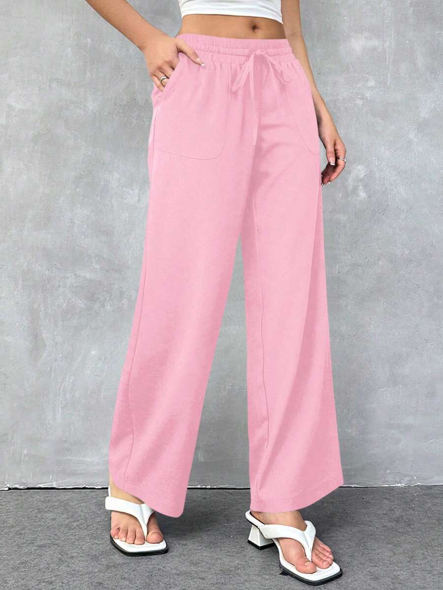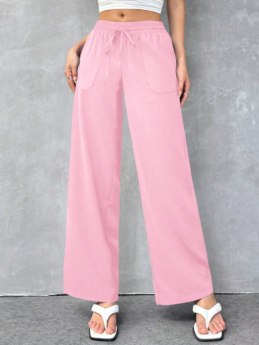 SHEIN MOOSTA Solid Color Drawstring Waist Pocket Wide Leg Casual Pants