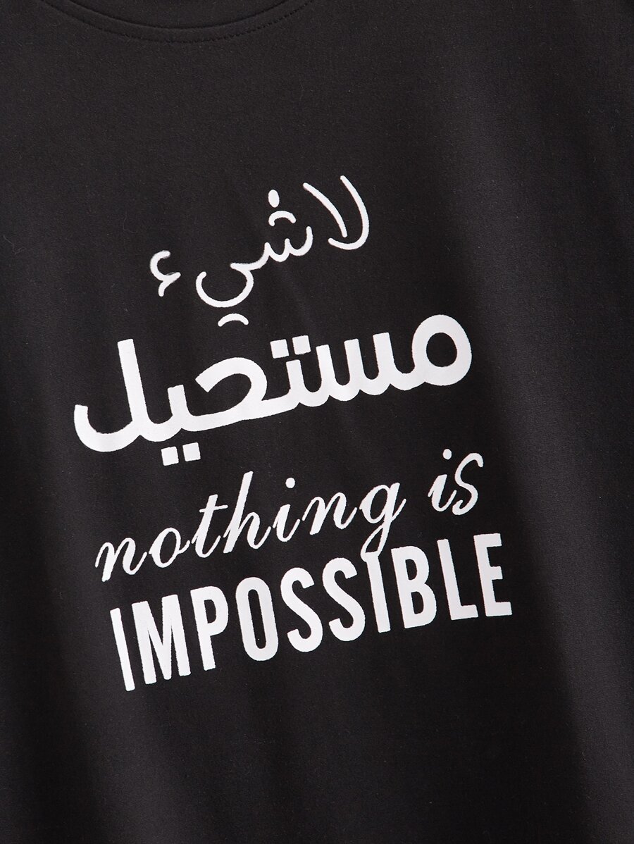 SHEIN Mulvari Slogan Graphic Short Sleeve Tee Nothing Is IMPOSSIBLE