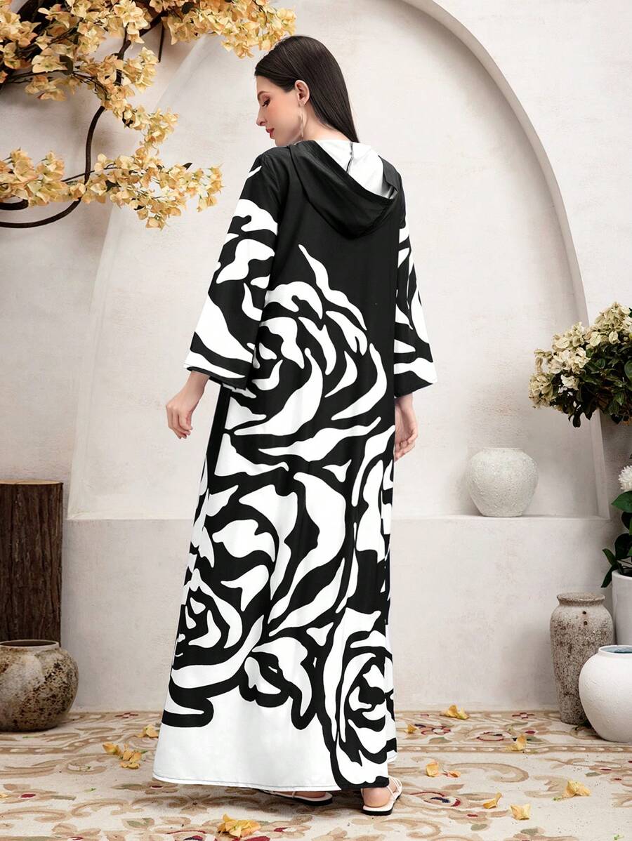 SHEIN Mulvari Women Fashionable Flower Print Long Sleeve Arabian Modest Dress quantity
