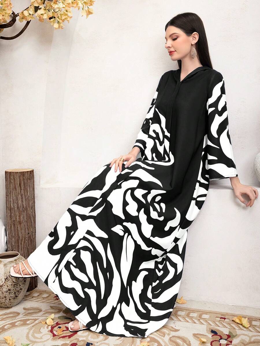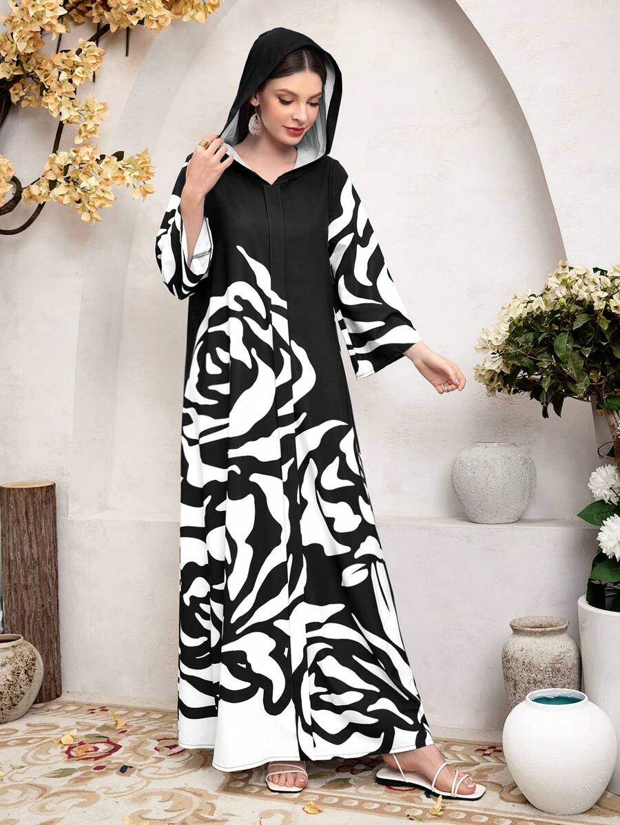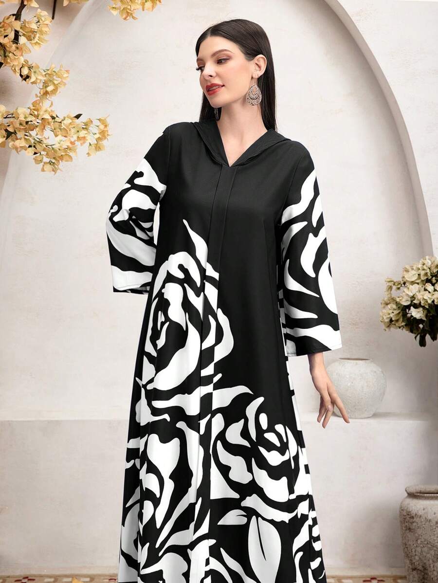 / SHEIN Mulvari Women Fashionable Flower Print Long Sleeve Arabian Modest Dress