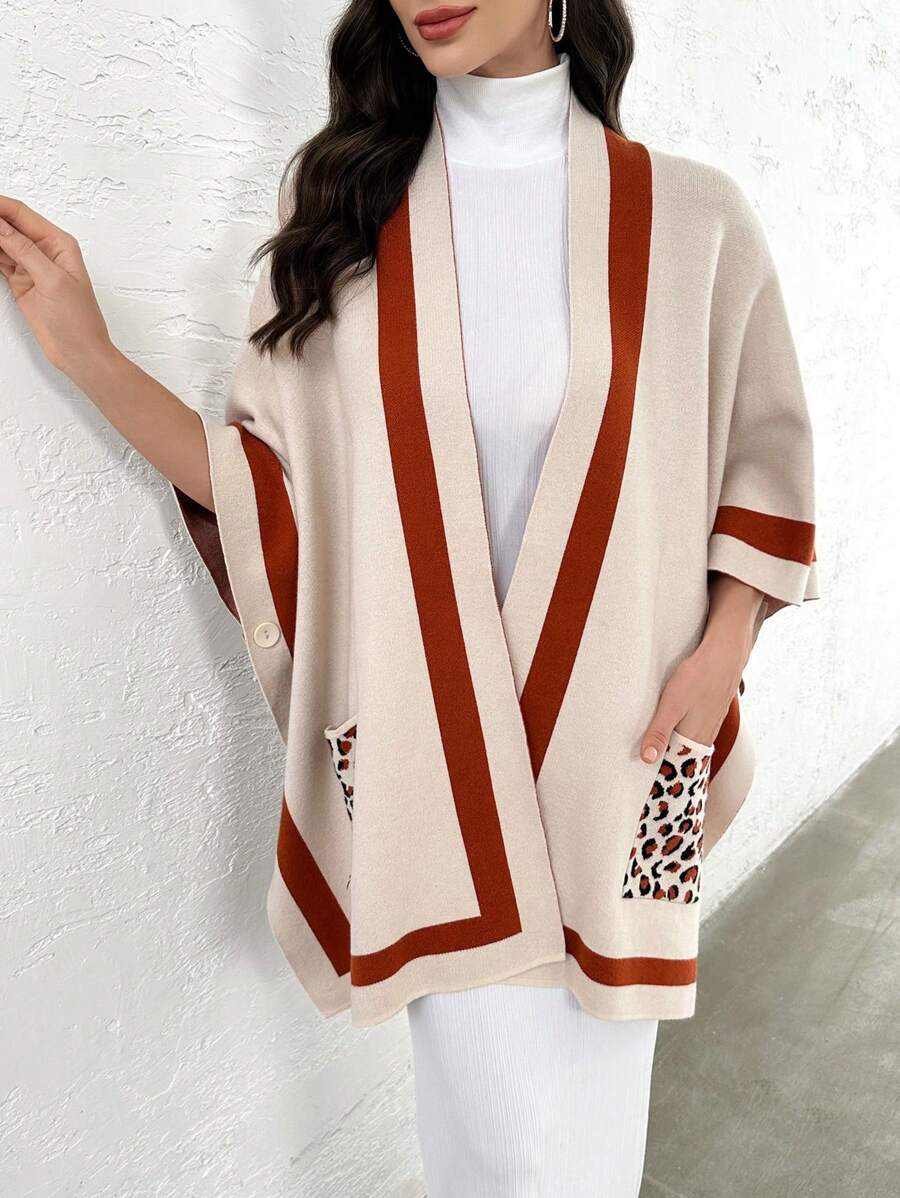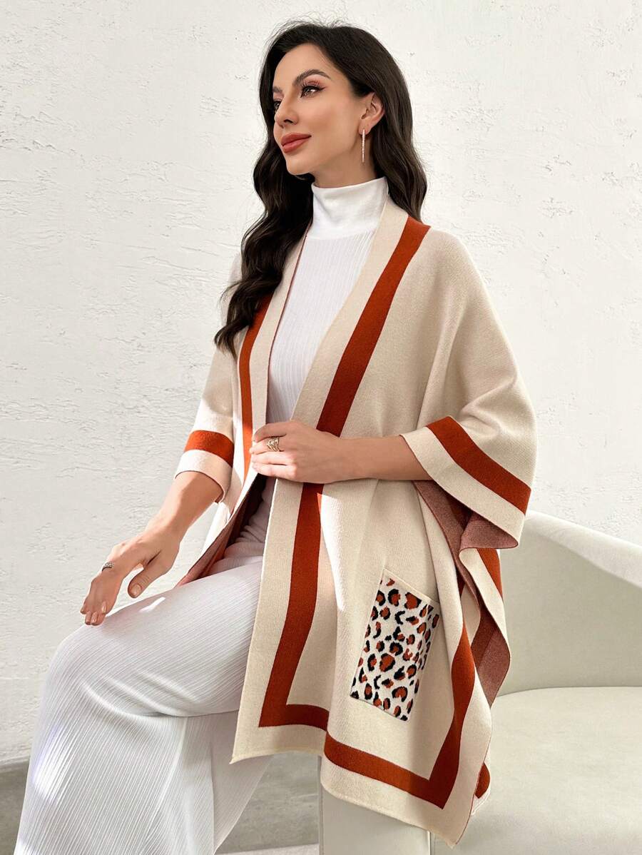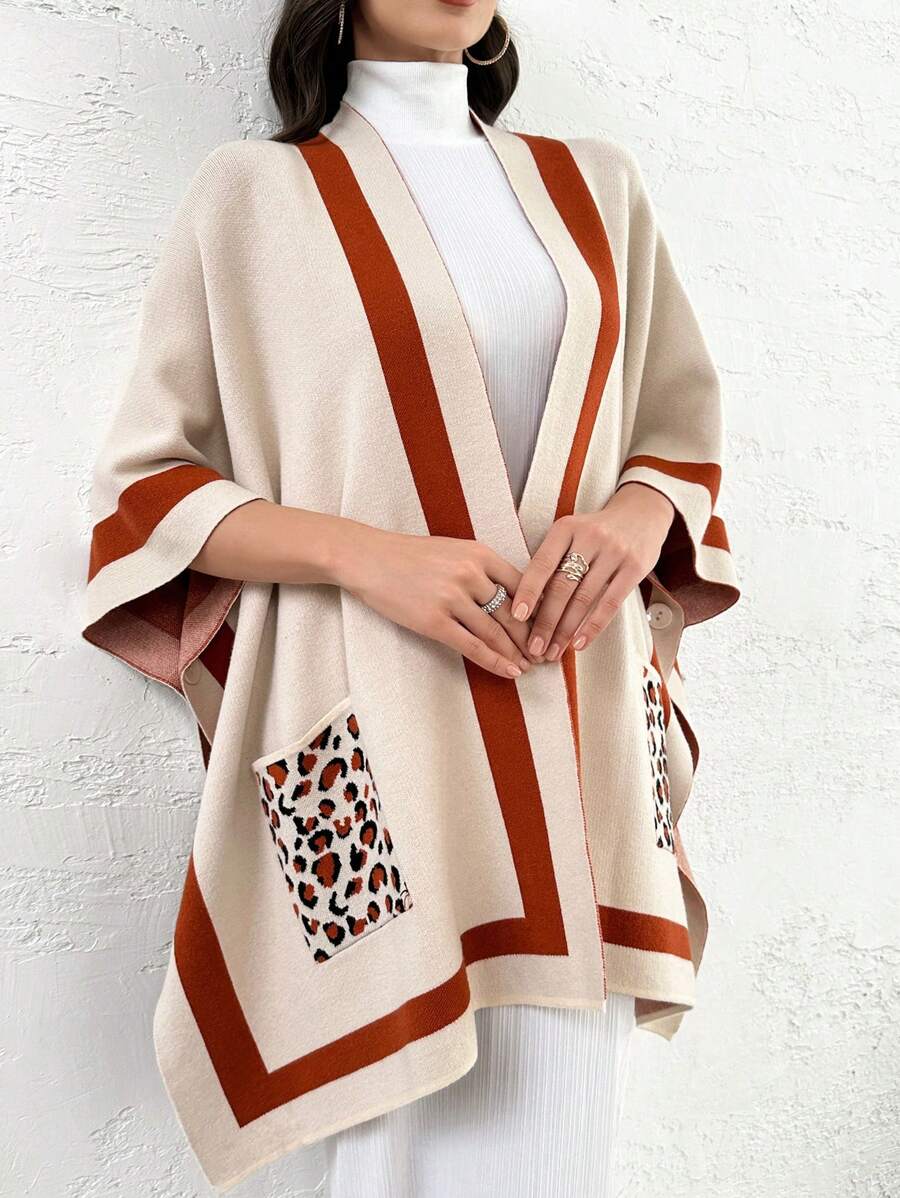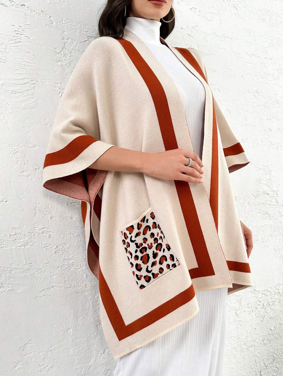 SHEIN Mulvari Women’s Autumn Leopard Print Color Block Batwing Sleeve Loose Elegant Cardigan