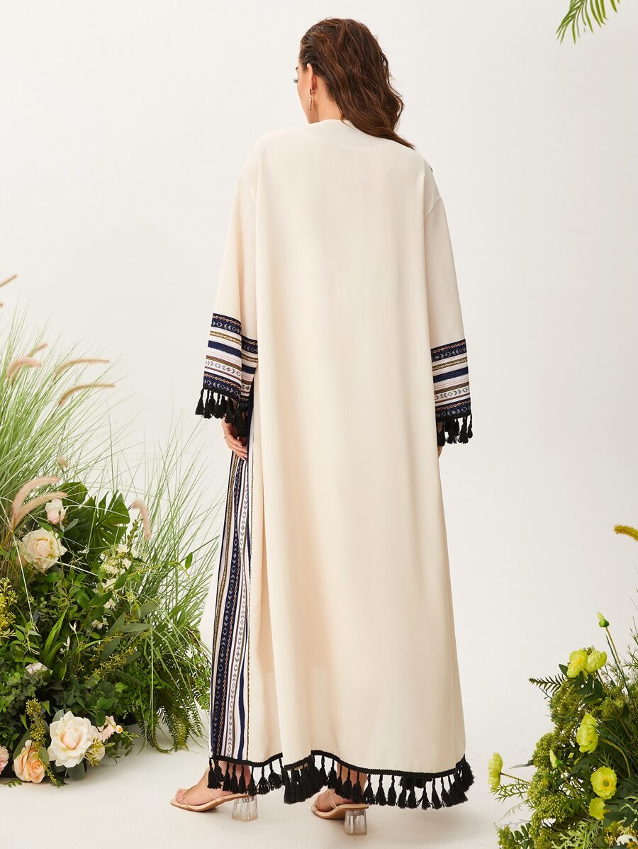 SHEIN Najma Open Front Graphic Pattern Fringe Detail Modest Long Sleeve