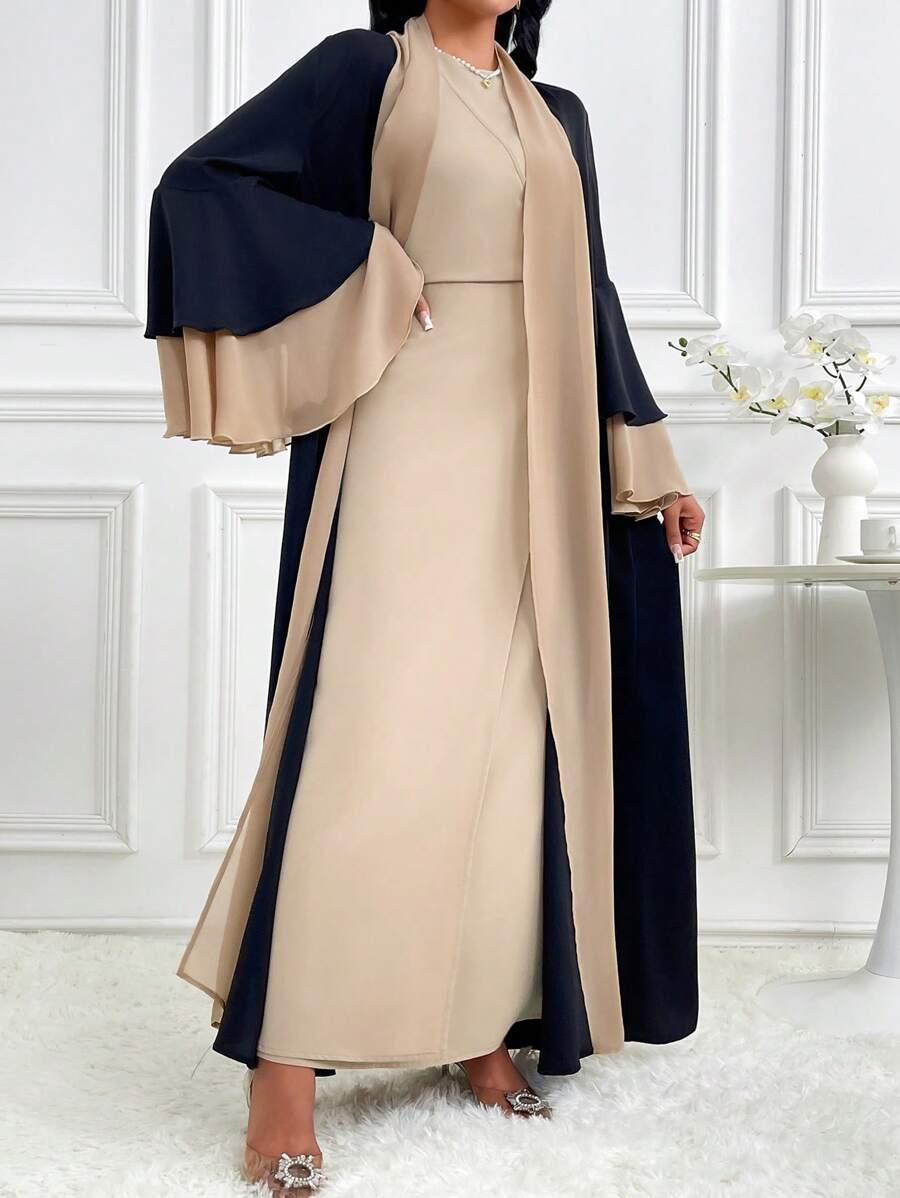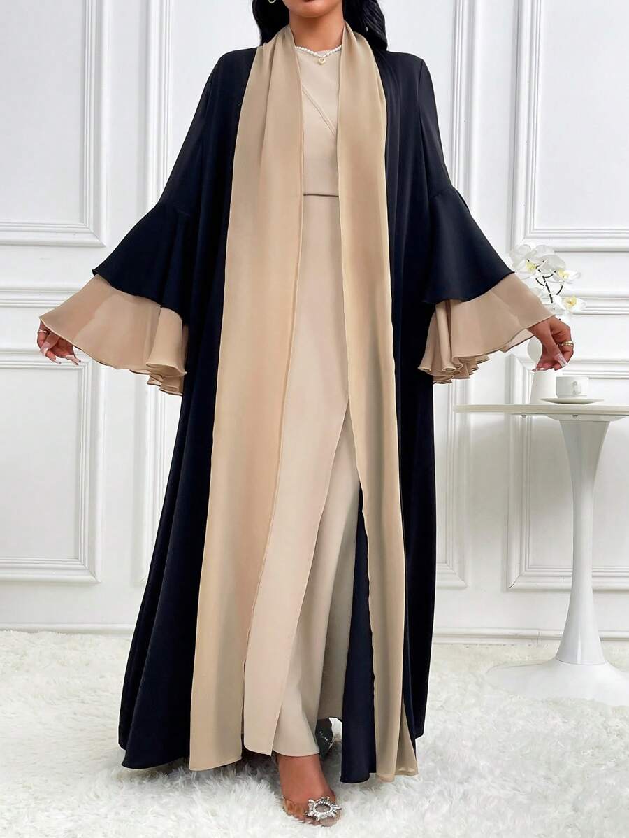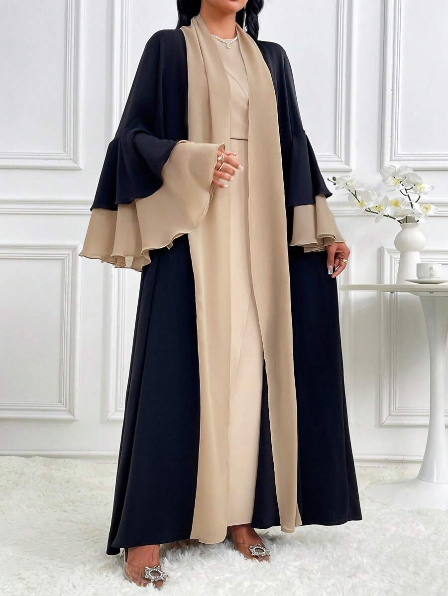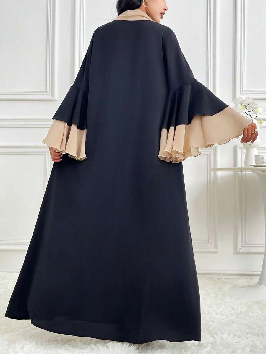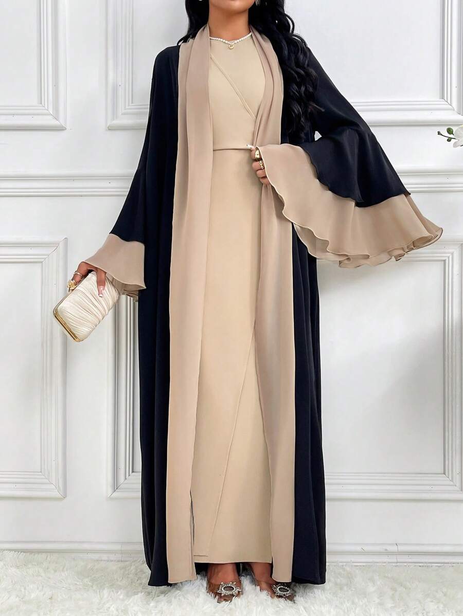 SHEIN Najma Women’s Contrast Color Bell Sleeve Loose Long Arabic Abaya Robe