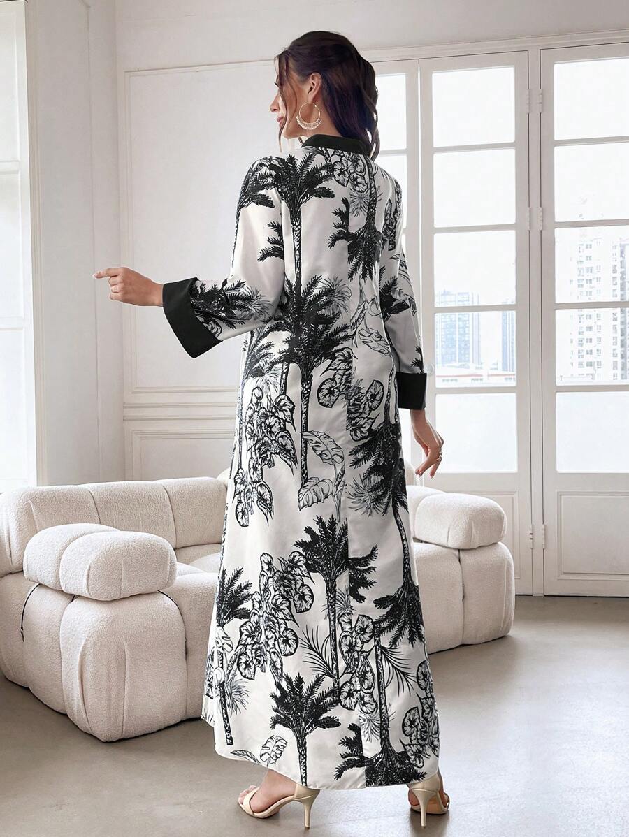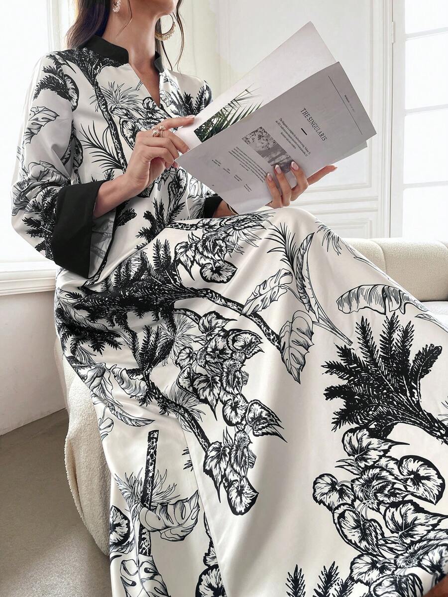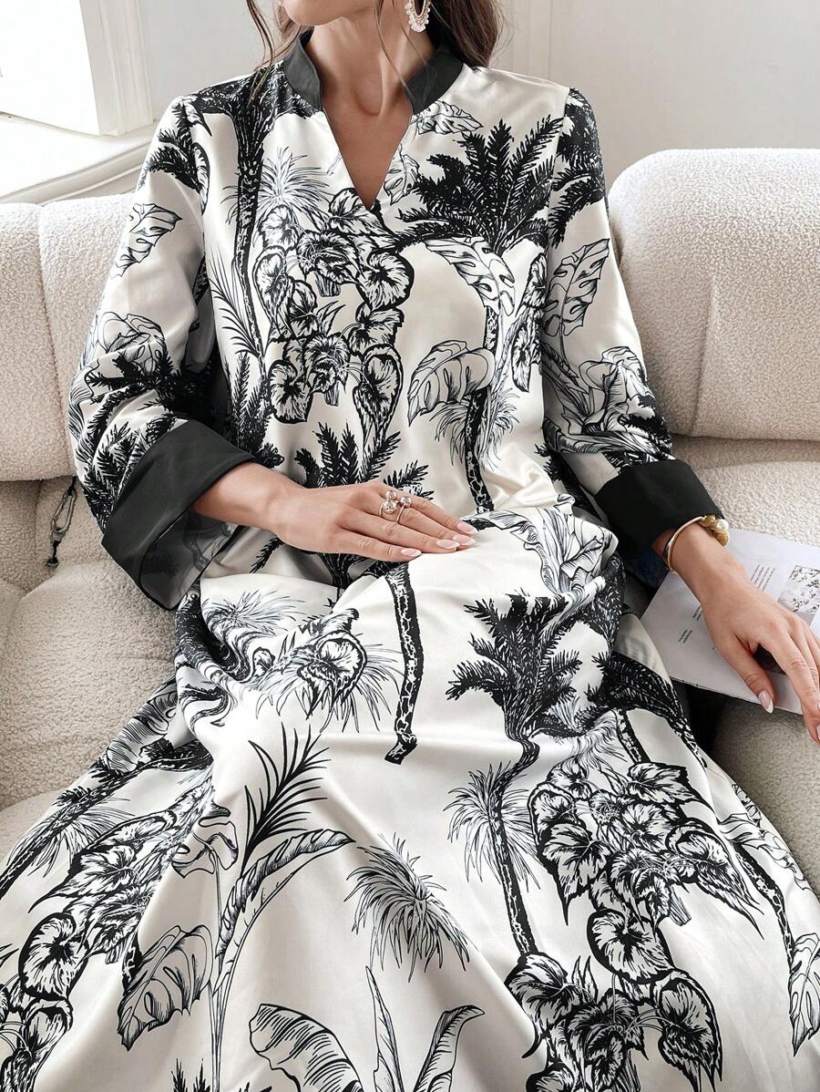 SHEIN Najma Women’s Random Printed Simple Daily Turkish Long Modest Long Sleeves Arabian Dress