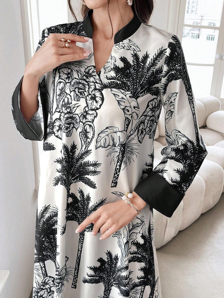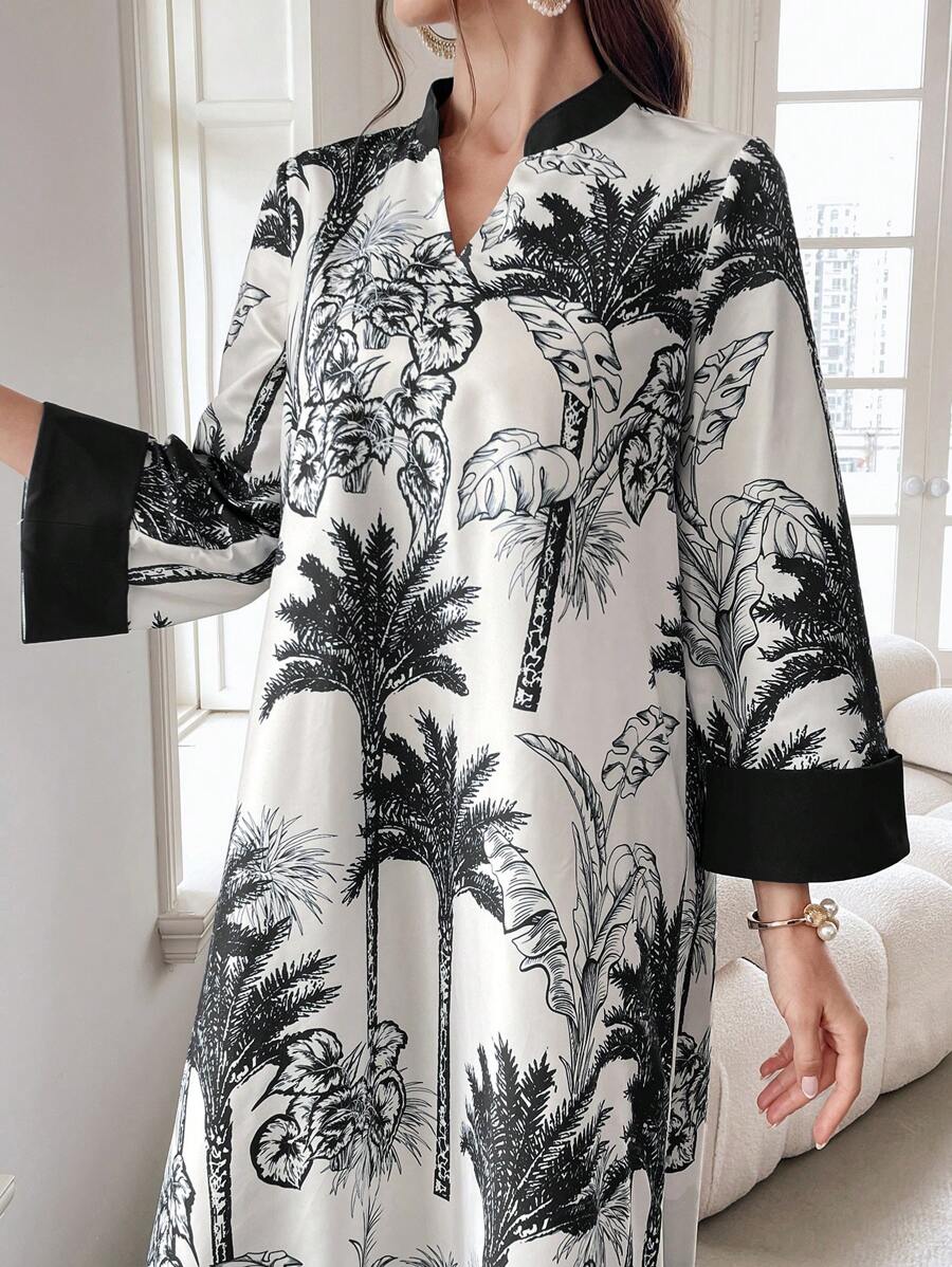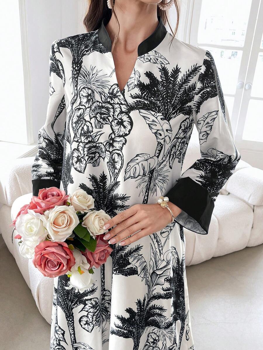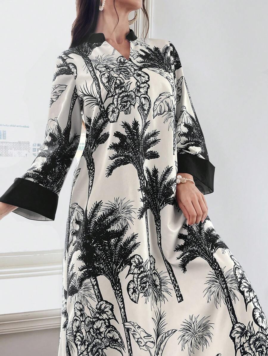 SHEIN Najma Women’s Random Printed Simple Daily Turkish Long Modest Long Sleeves Arabian Dress
