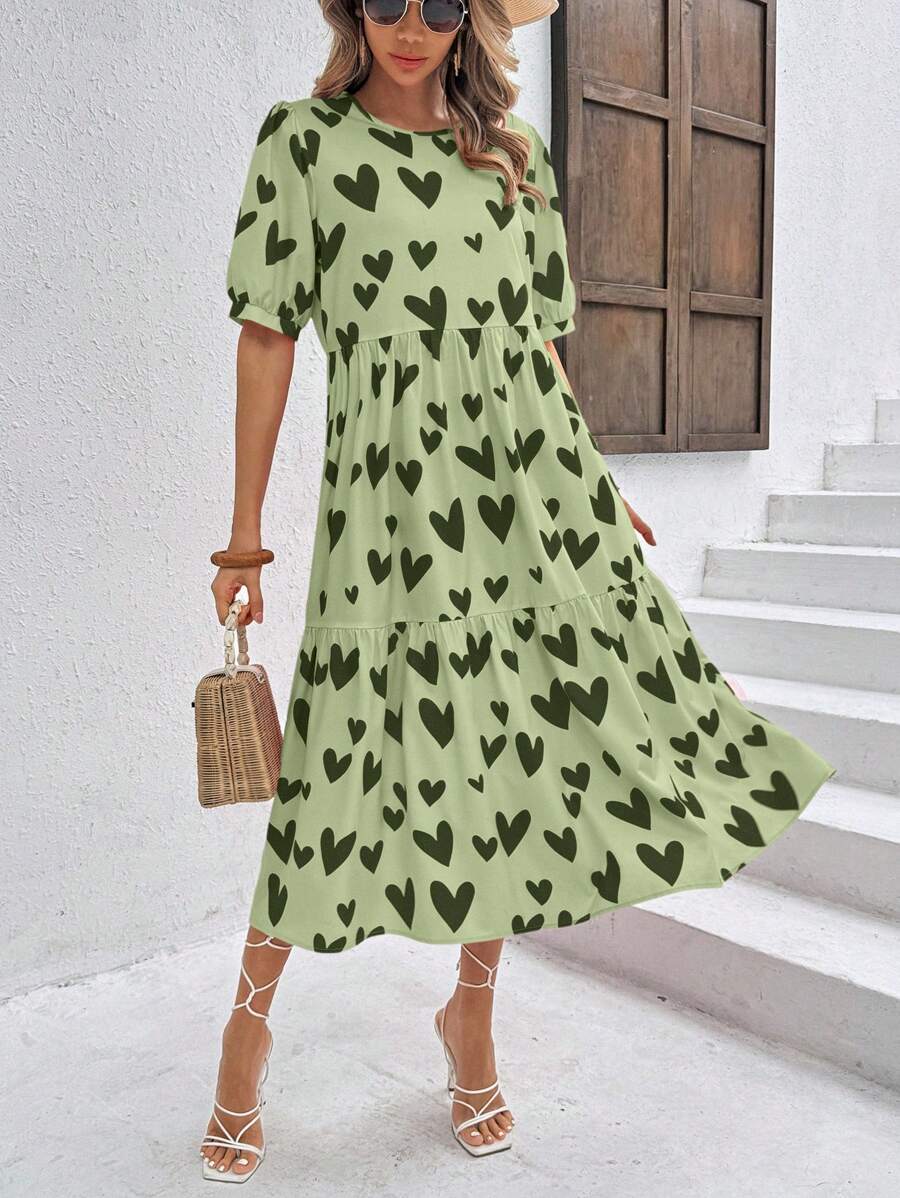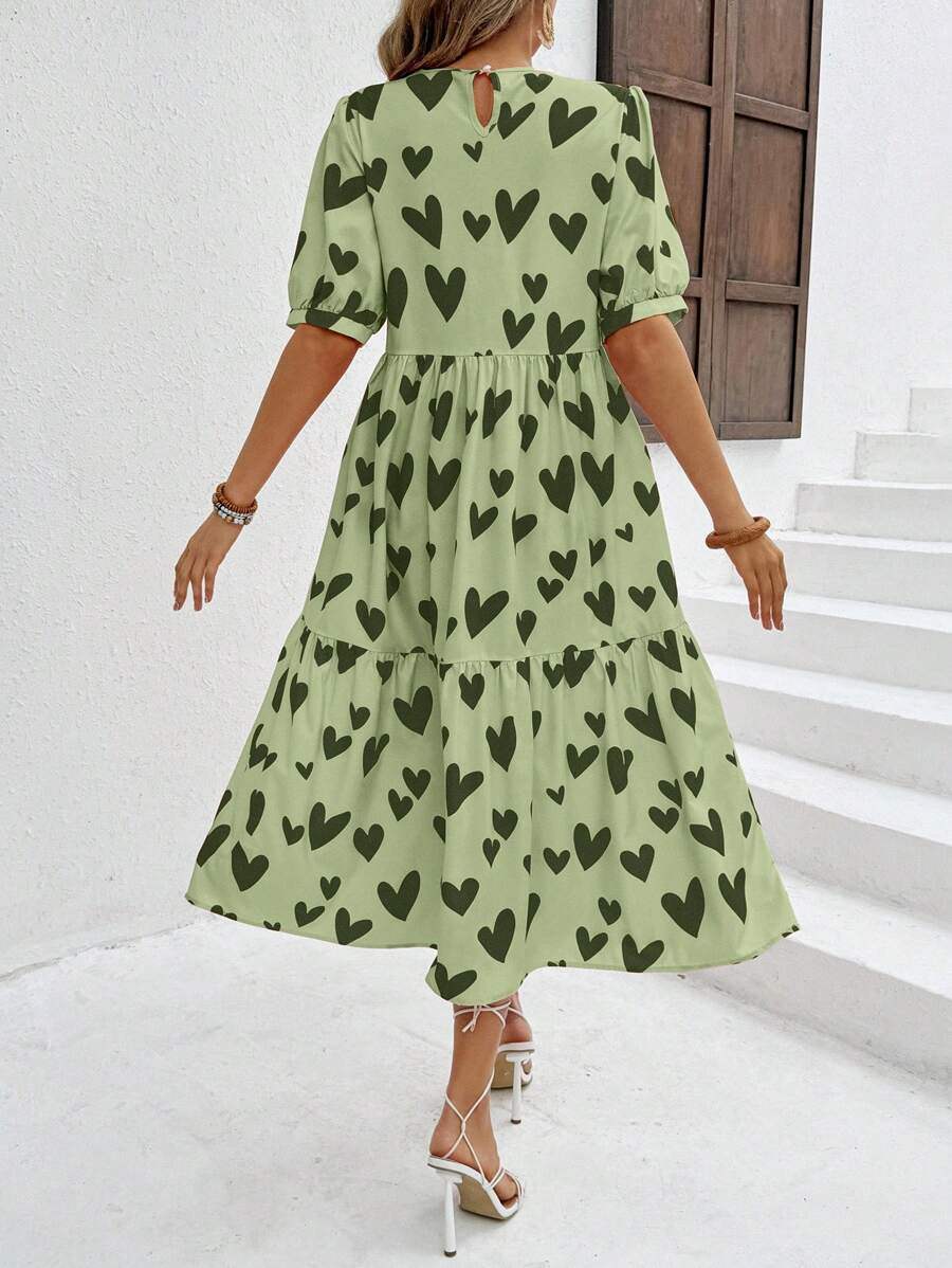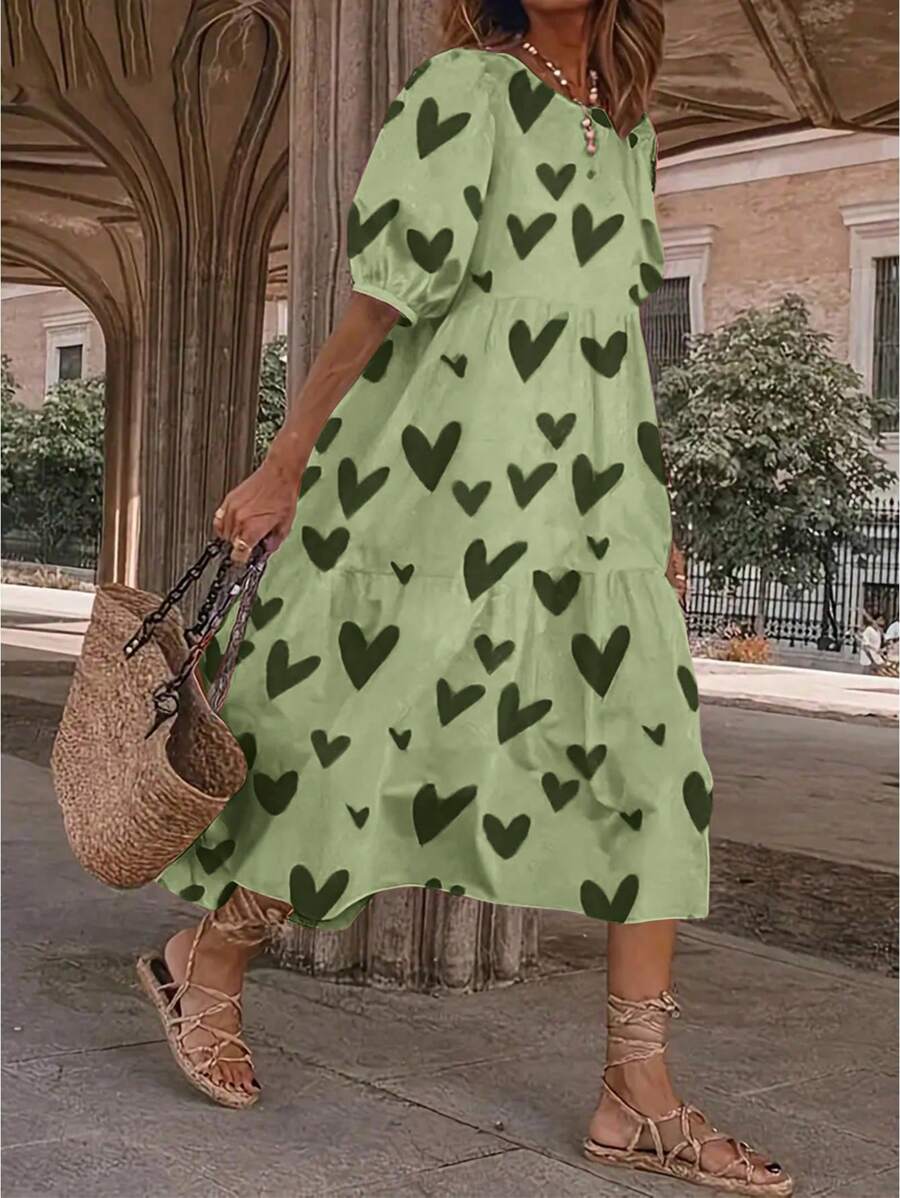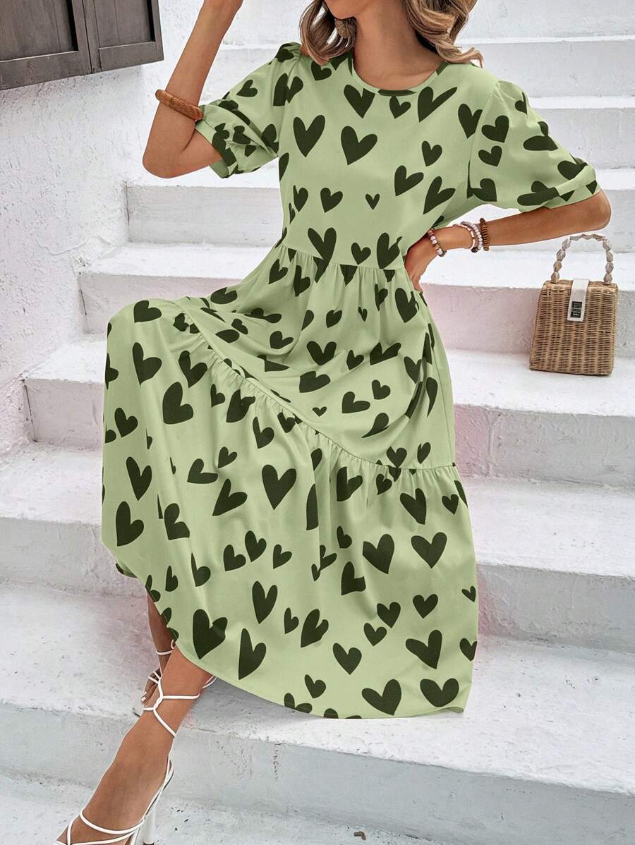 / SHEIN Relaxiva Heart Print Loose Crew Neck Short Sleeve Casual Dress