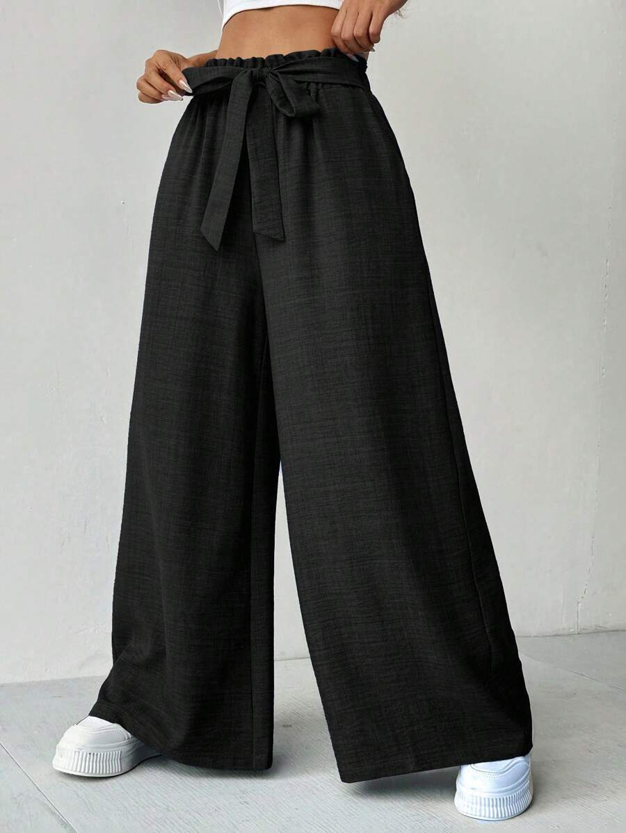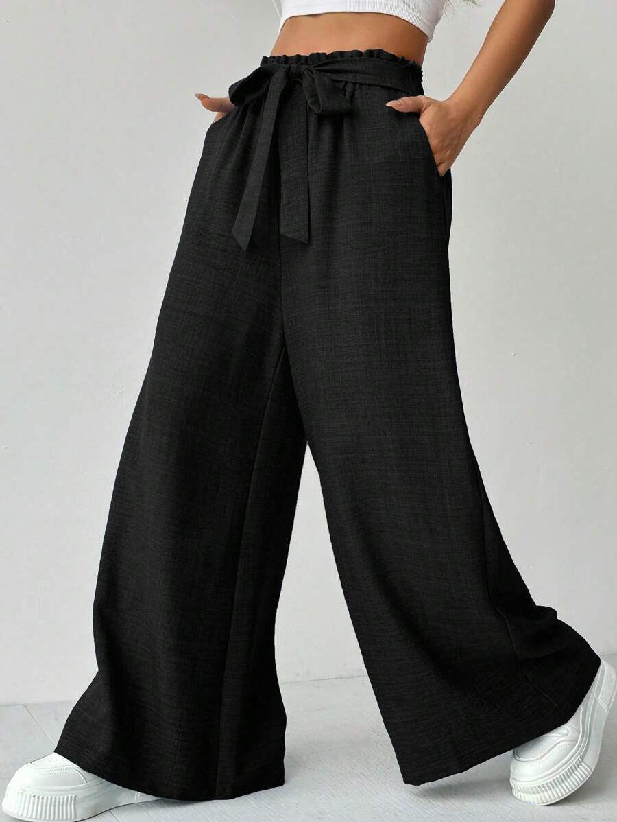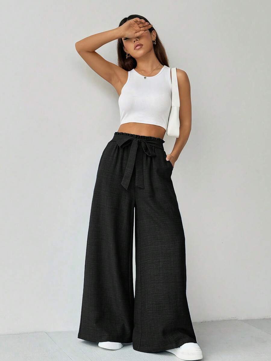 / SHEIN Relaxiva Women’s Solid Color Pleated Pocket Tie-Waist Cropped Pants