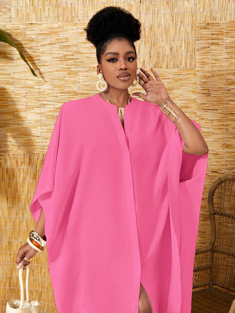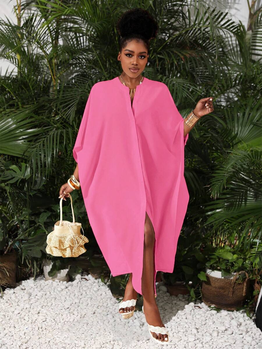 SHEIN Slayr Women’s Solid Color Vacation Casual Long Loose V-Neck Dress