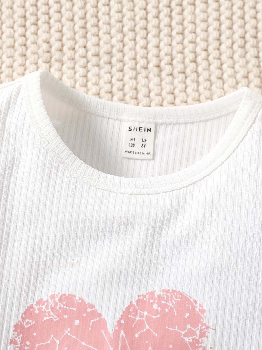 • Heart Print Tee: Soft, breathable fabric with an eye-catching heart print on the front.
