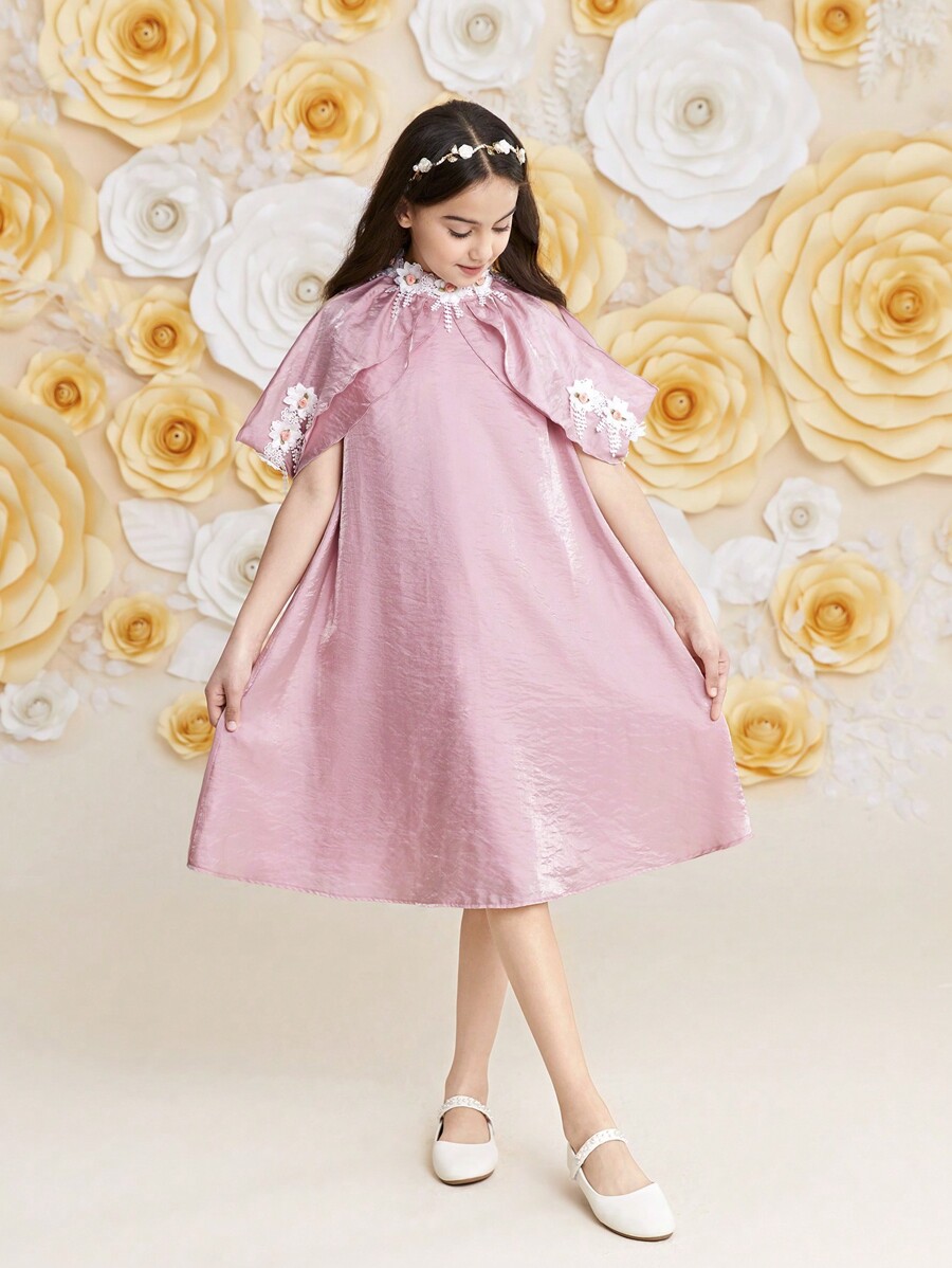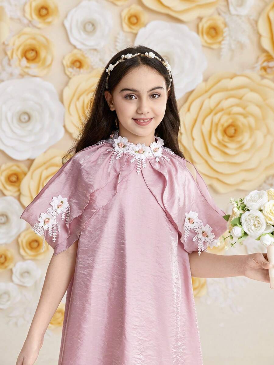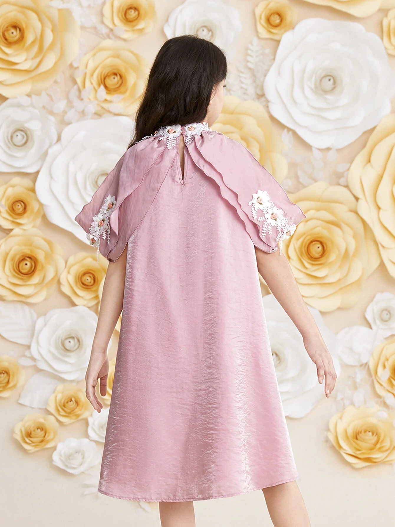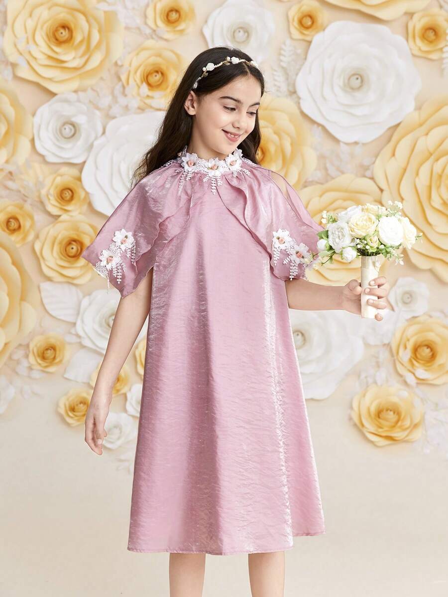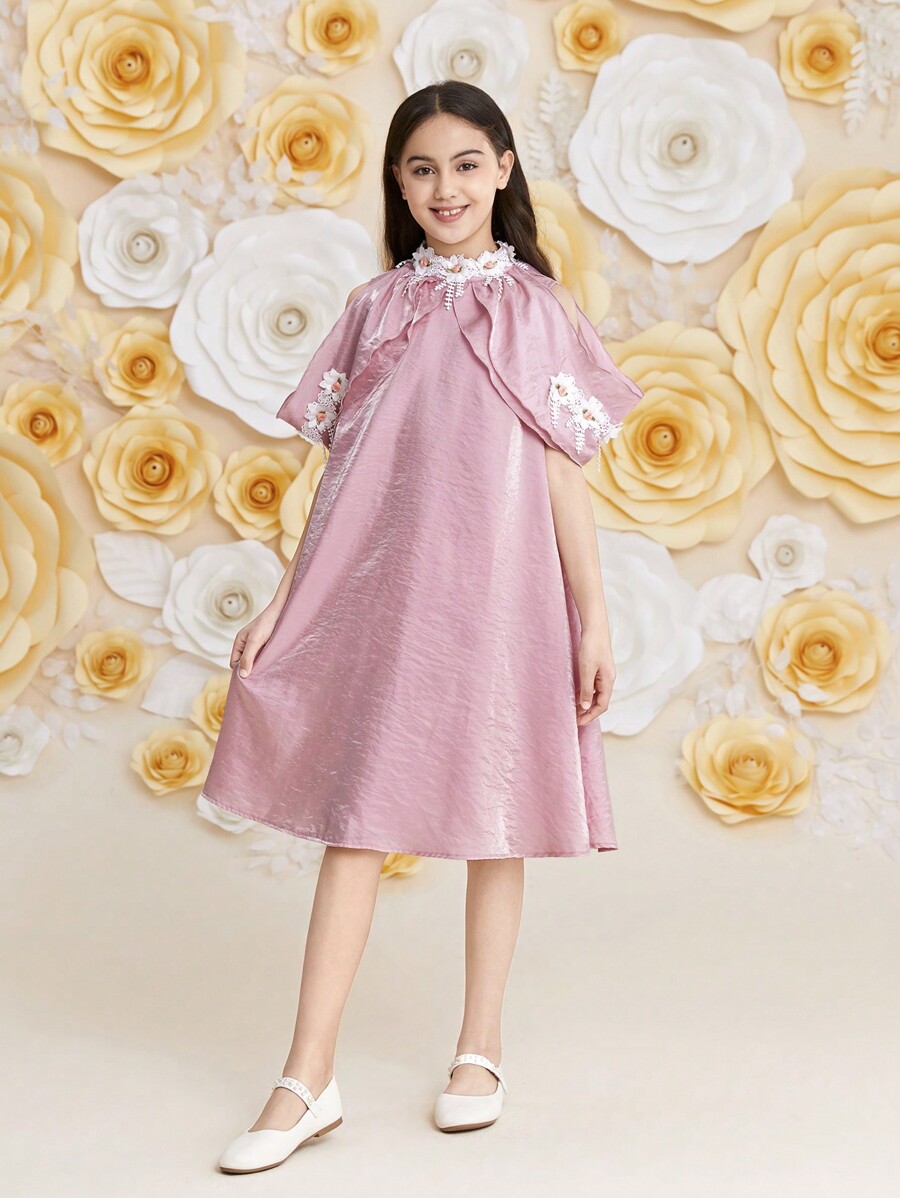 SHEIN Tween Girls’ 3d Lace Embellished Peter Pan Collar A-Line Dress