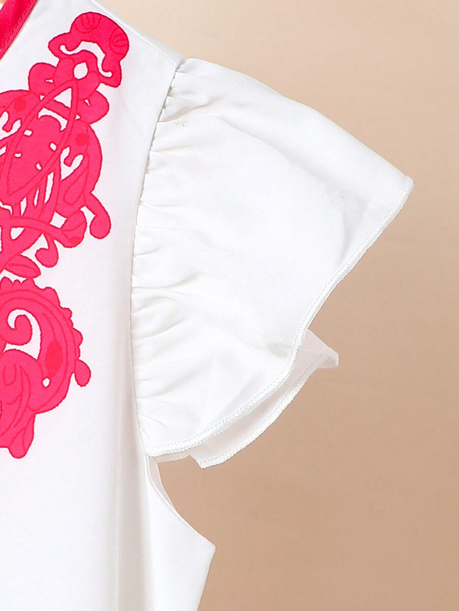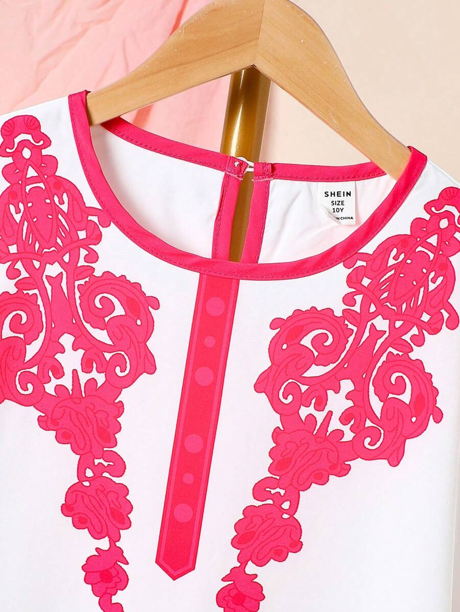SHEIN Tween Girls’ Elegant Cap Sleeve Printed Patchwork Dress