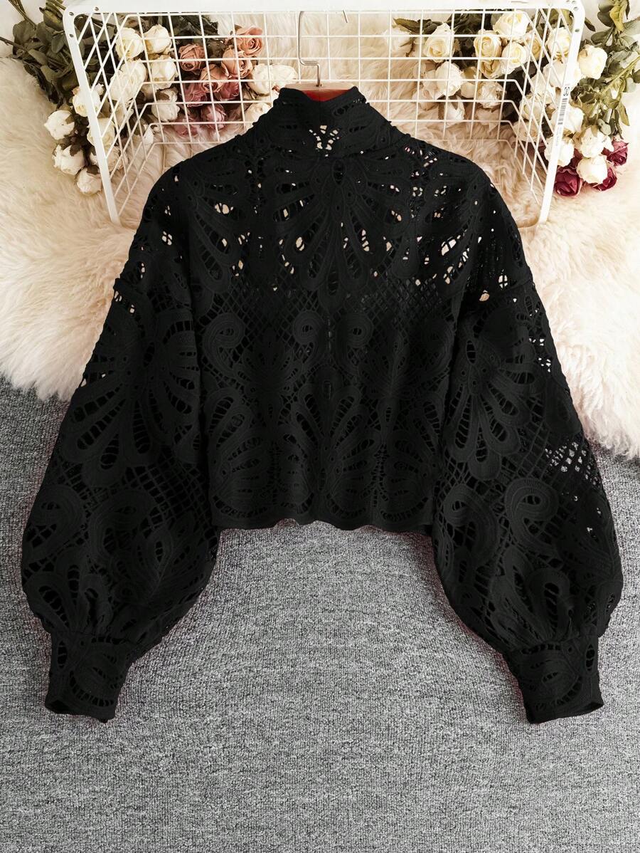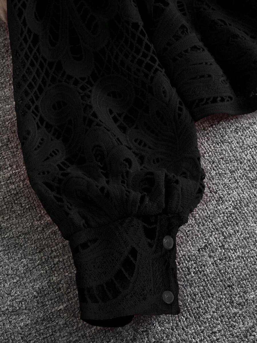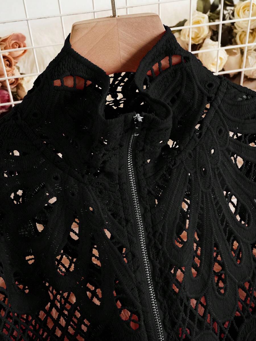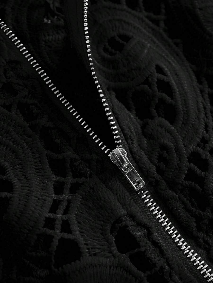 SHEIN Unity Plain Front Zipper Hollow Long Sleeve Casual Shirt,Long Sleeve Tops