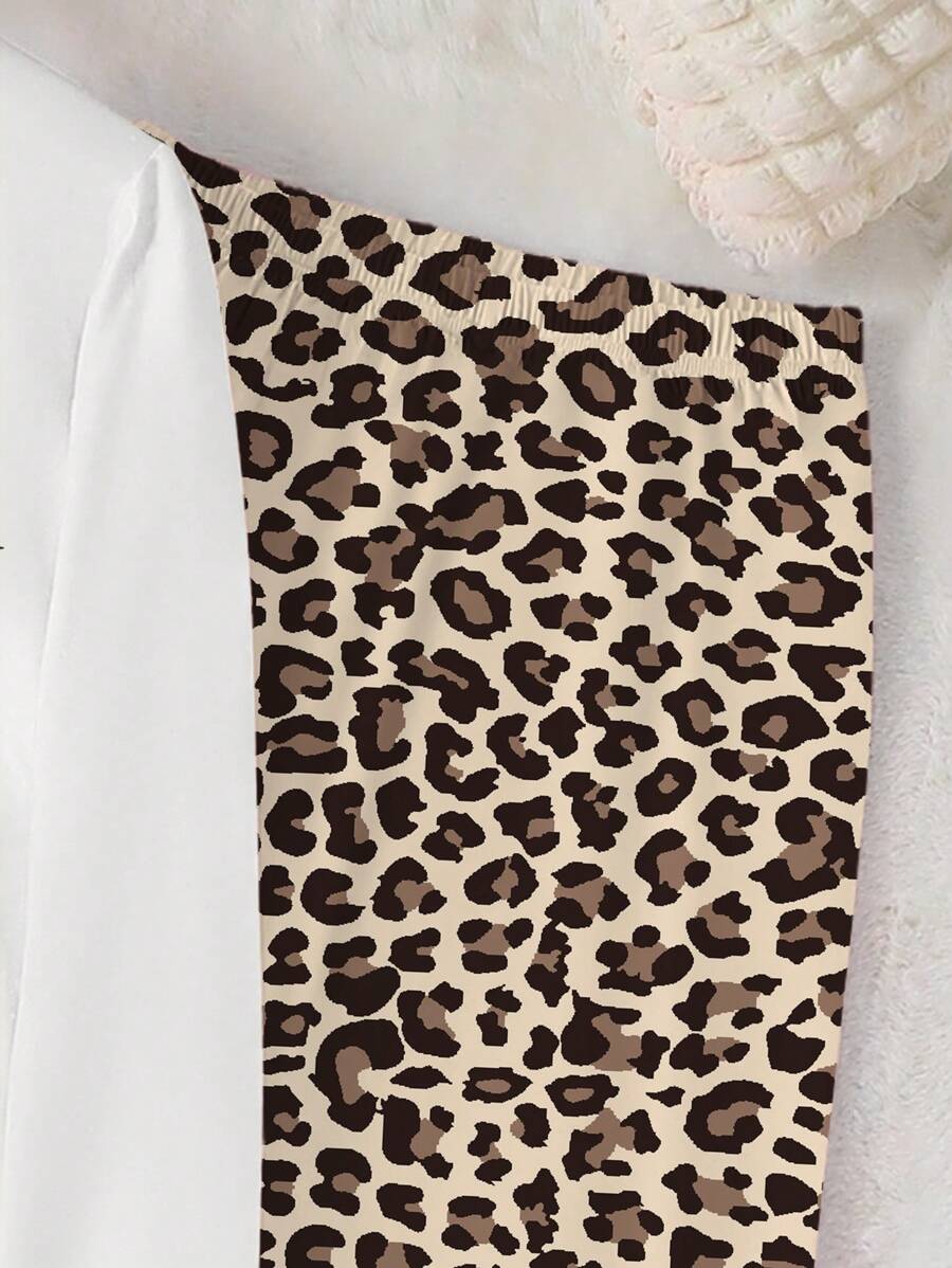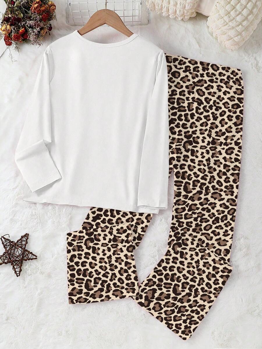 / SHEIN Wildeya 2pcs Tween Girl Leopard & Rainbow Graphic Casual Comfortable Sleepwear Pajama Set