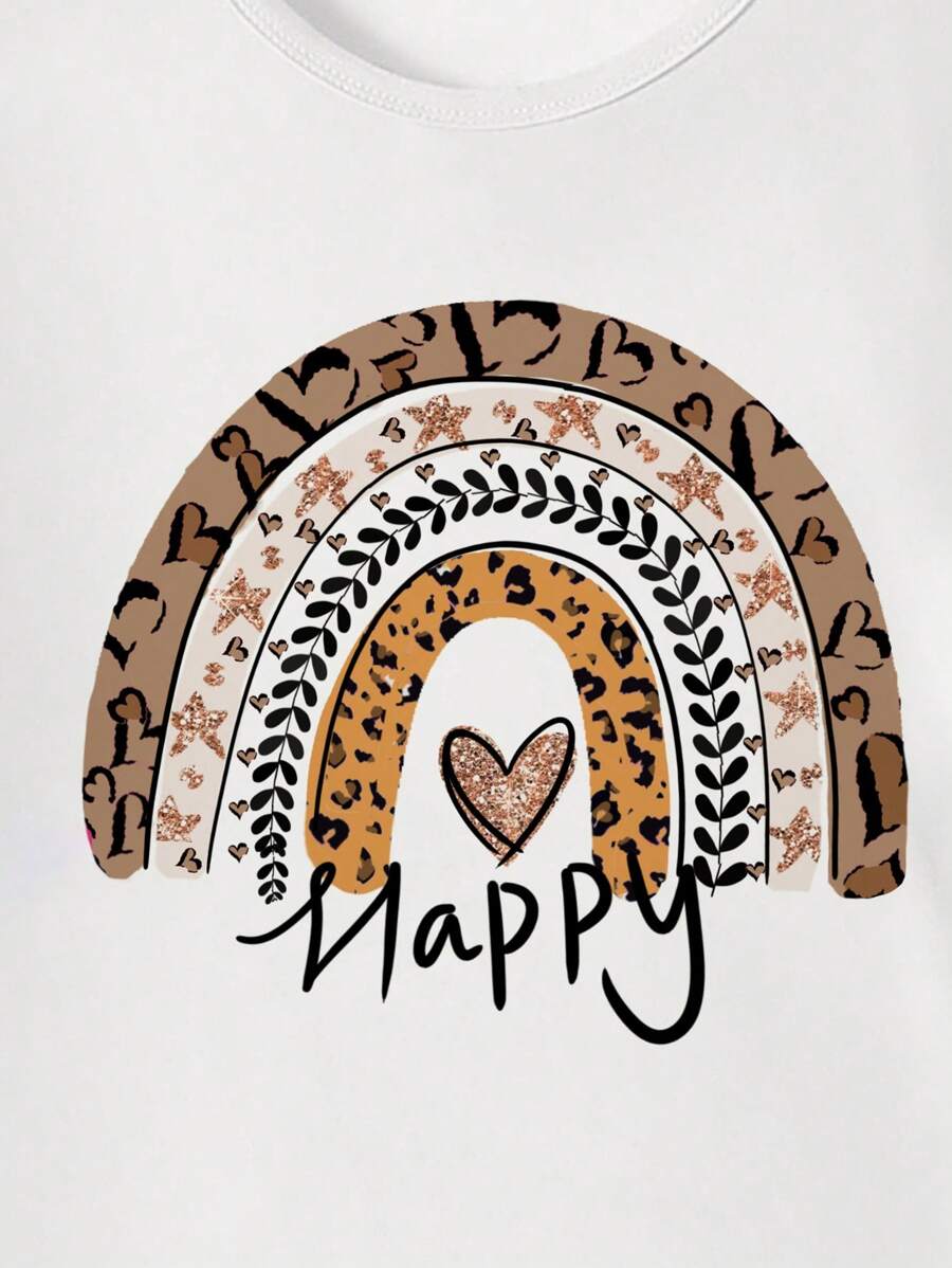 SHEIN Wildeya 2pcs Tween Girl Leopard & Rainbow Graphic Casual Comfortable Sleepwear Pajama Set