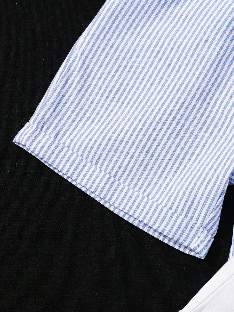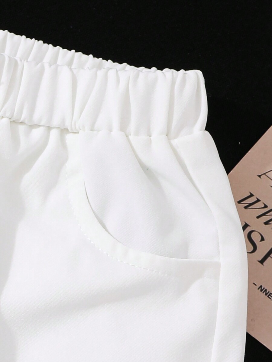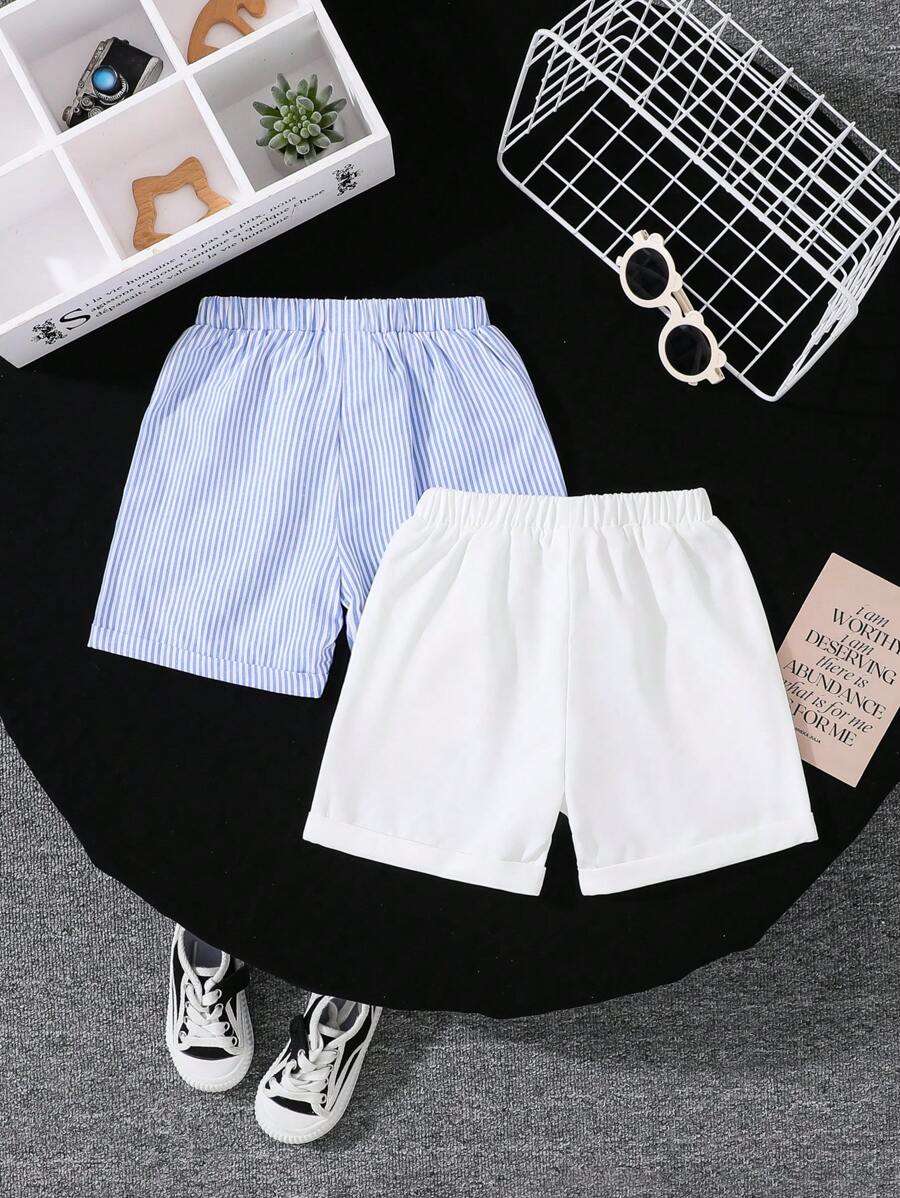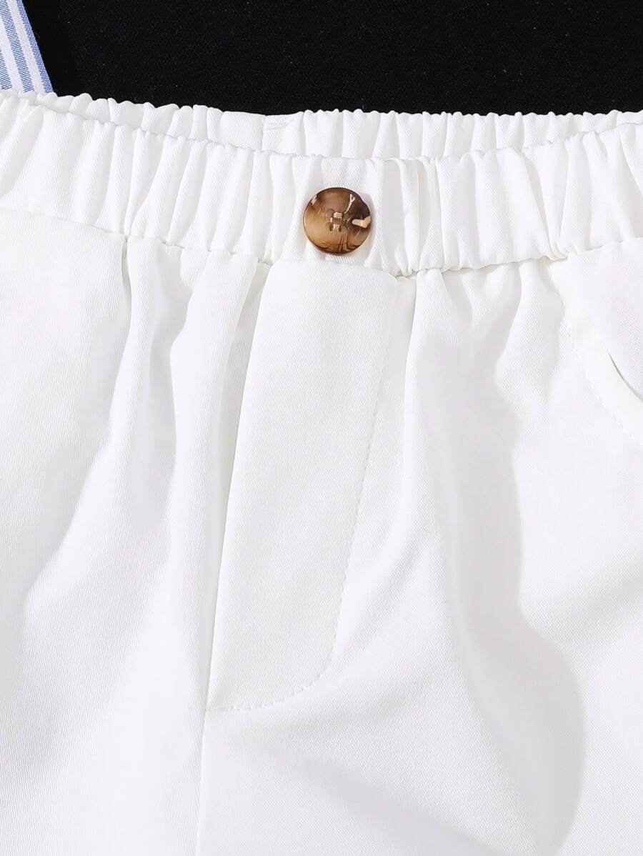 / SHEIN Young Boy 2pcs Casual Academy Style Shorts With Pockets, Decorative Buttons And Rolled Hem