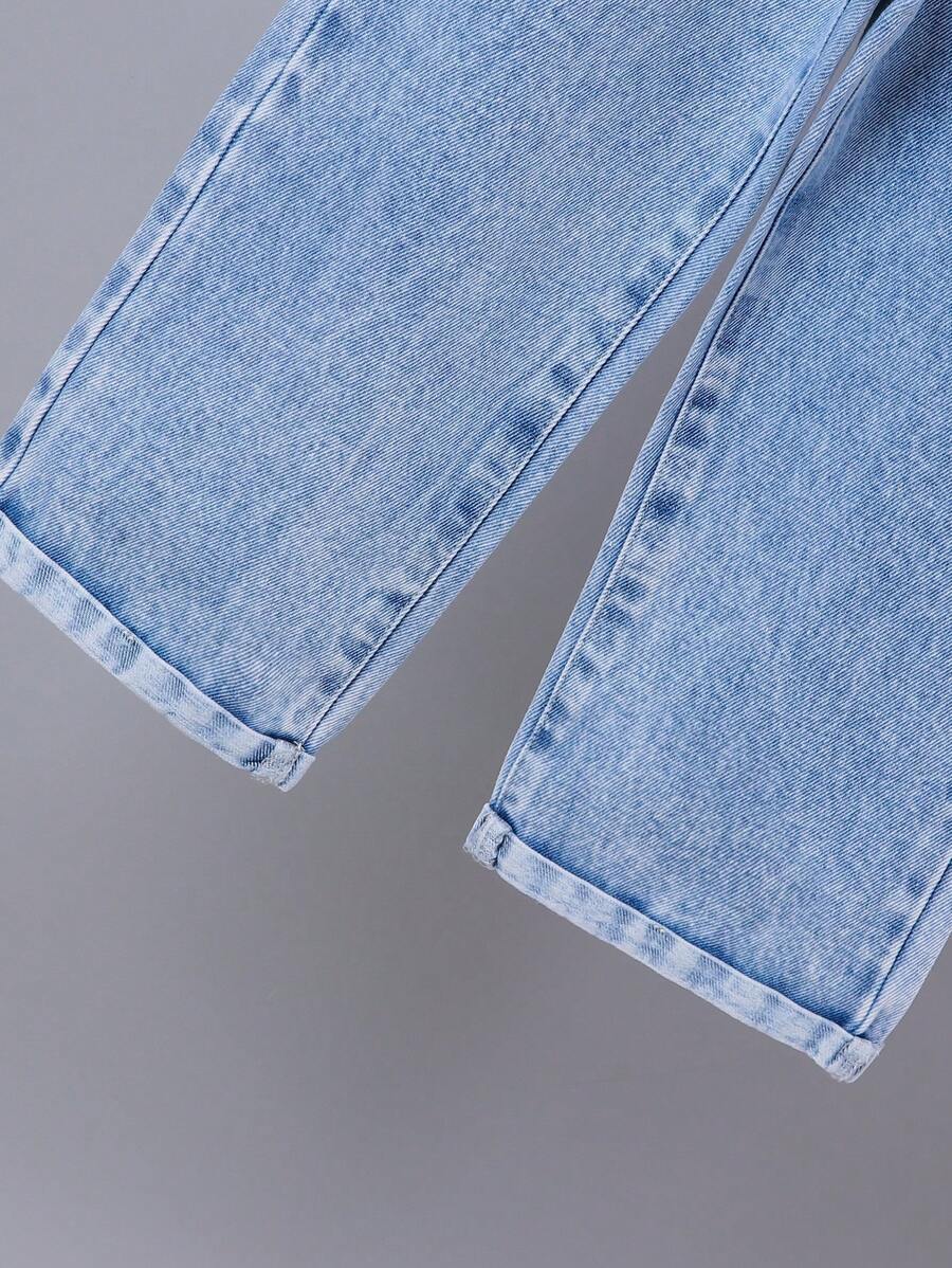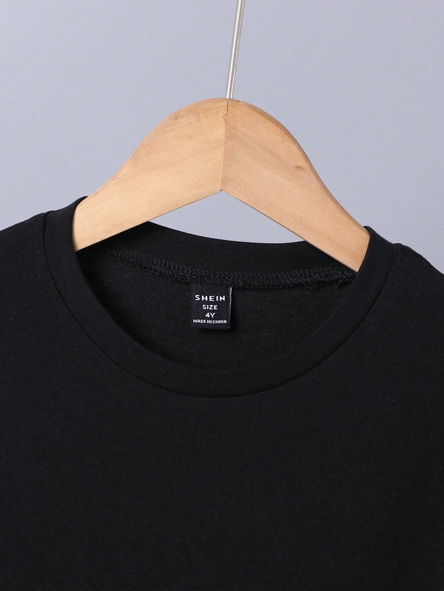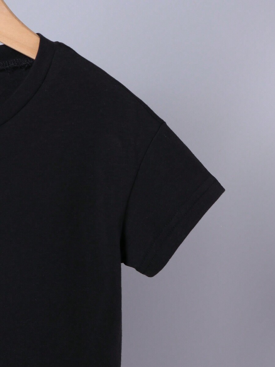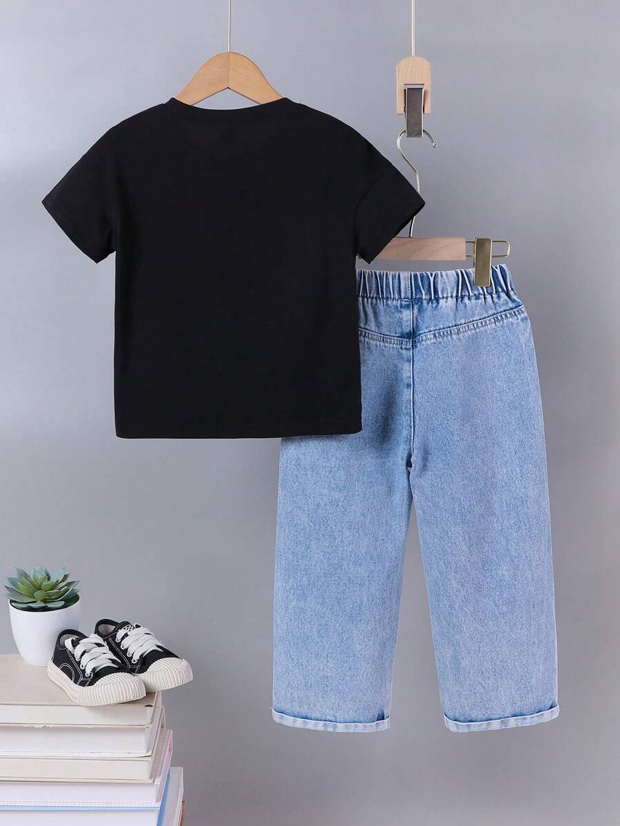 SHEIN Young Boy 2pcs/Set Basic Simple Loose Fit Soft Comfortable Short-Sleeve T-Shirt & Drawstring Waist Baggy Denim Pants For Daily Wear quantity