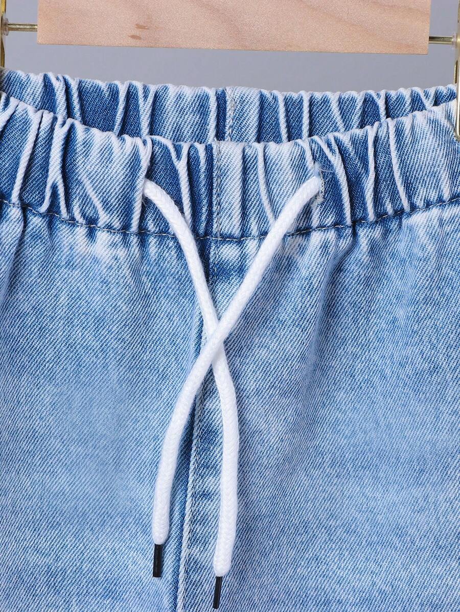 SHEIN Young Boy 2pcs/Set Basic Simple Loose Fit Soft Comfortable Short-Sleeve T-Shirt & Drawstring Waist Baggy Denim Pants For Daily Wear