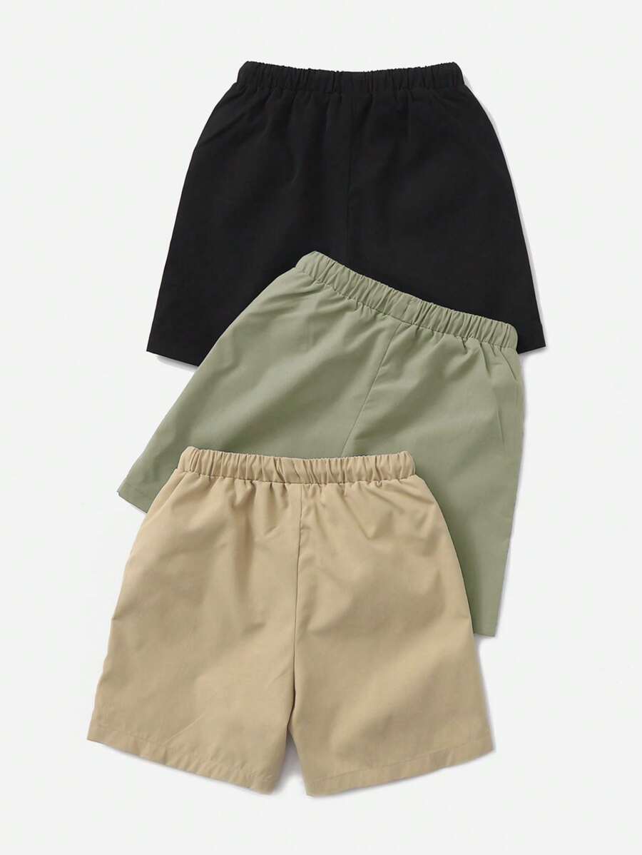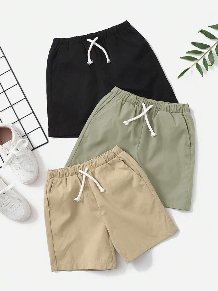 SHEIN Young Boy 3pcs/Set Casual Comfortable Drawstring Solid Color Shorts