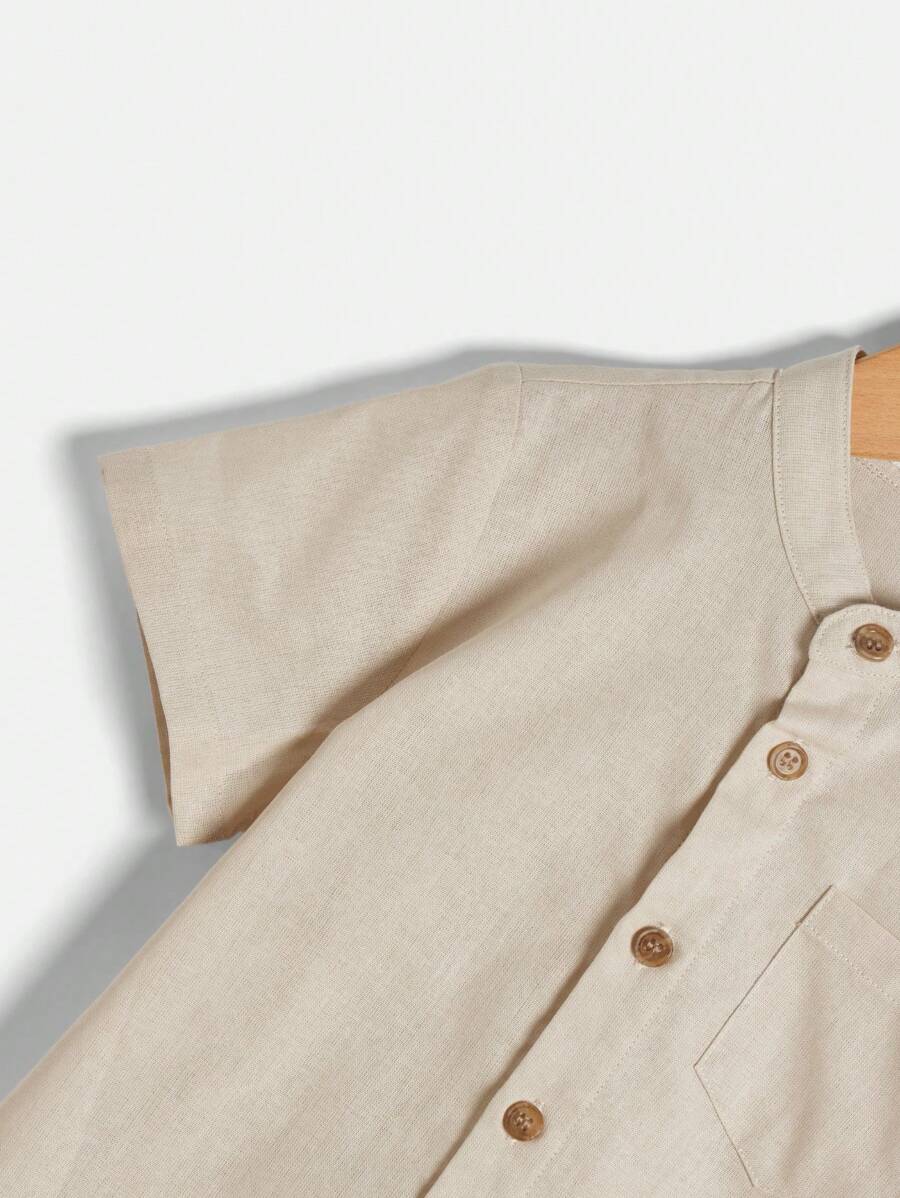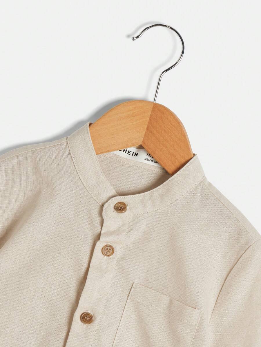 SHEIN Young Boy Casual And Comfortable Solid Color Small Stand Collar Shirt quantity