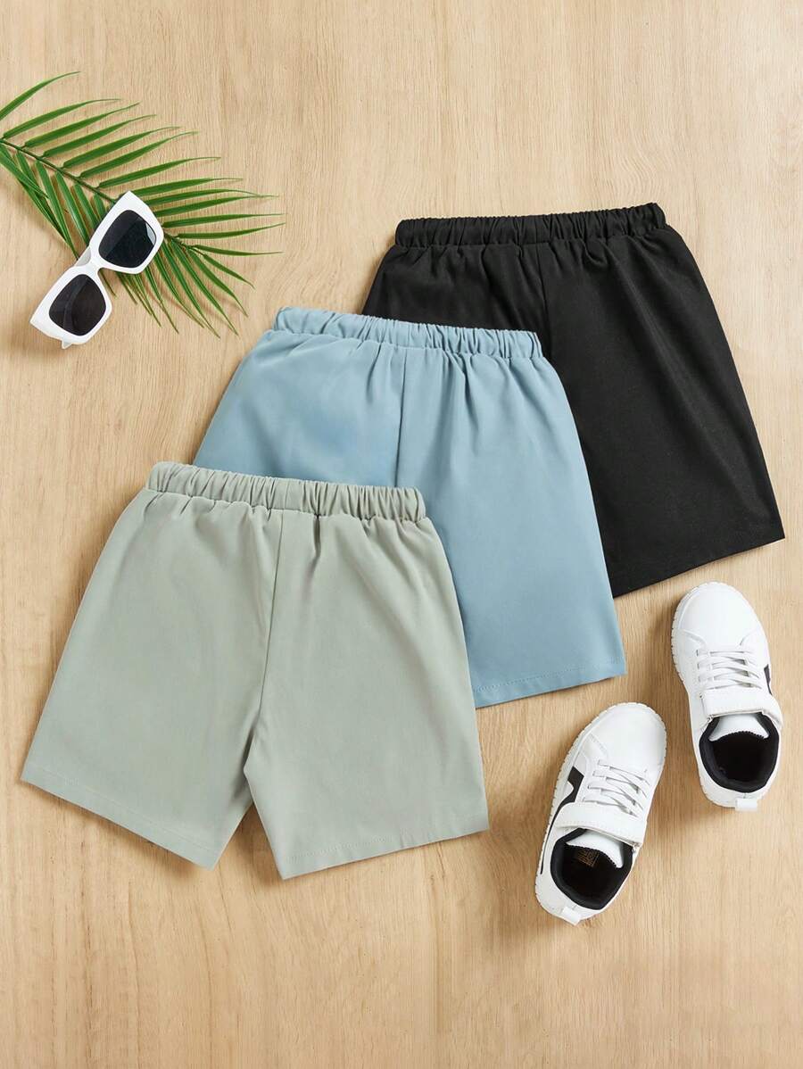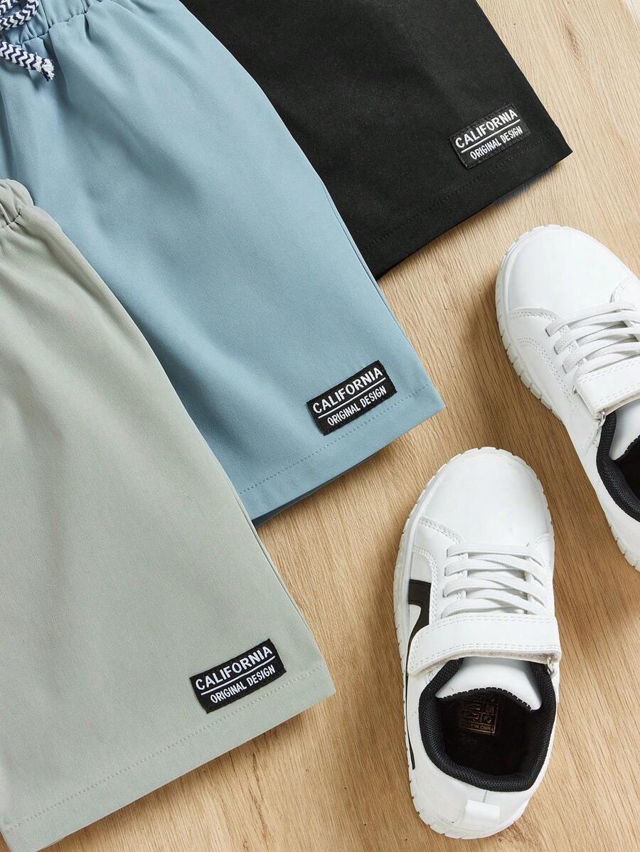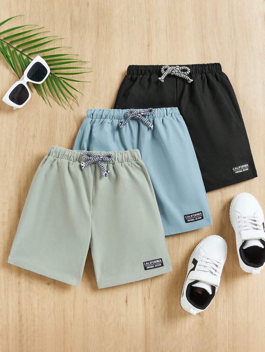 SHEIN Young Boy Casual Comfortable Patch Detail Shorts 3pcs/Set