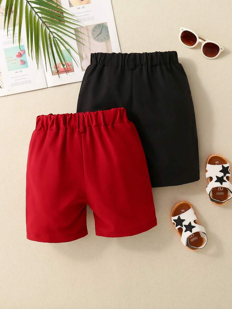 SHEIN Young Boy Fashion Solid Elastic Waist Casual Shorts quantity
