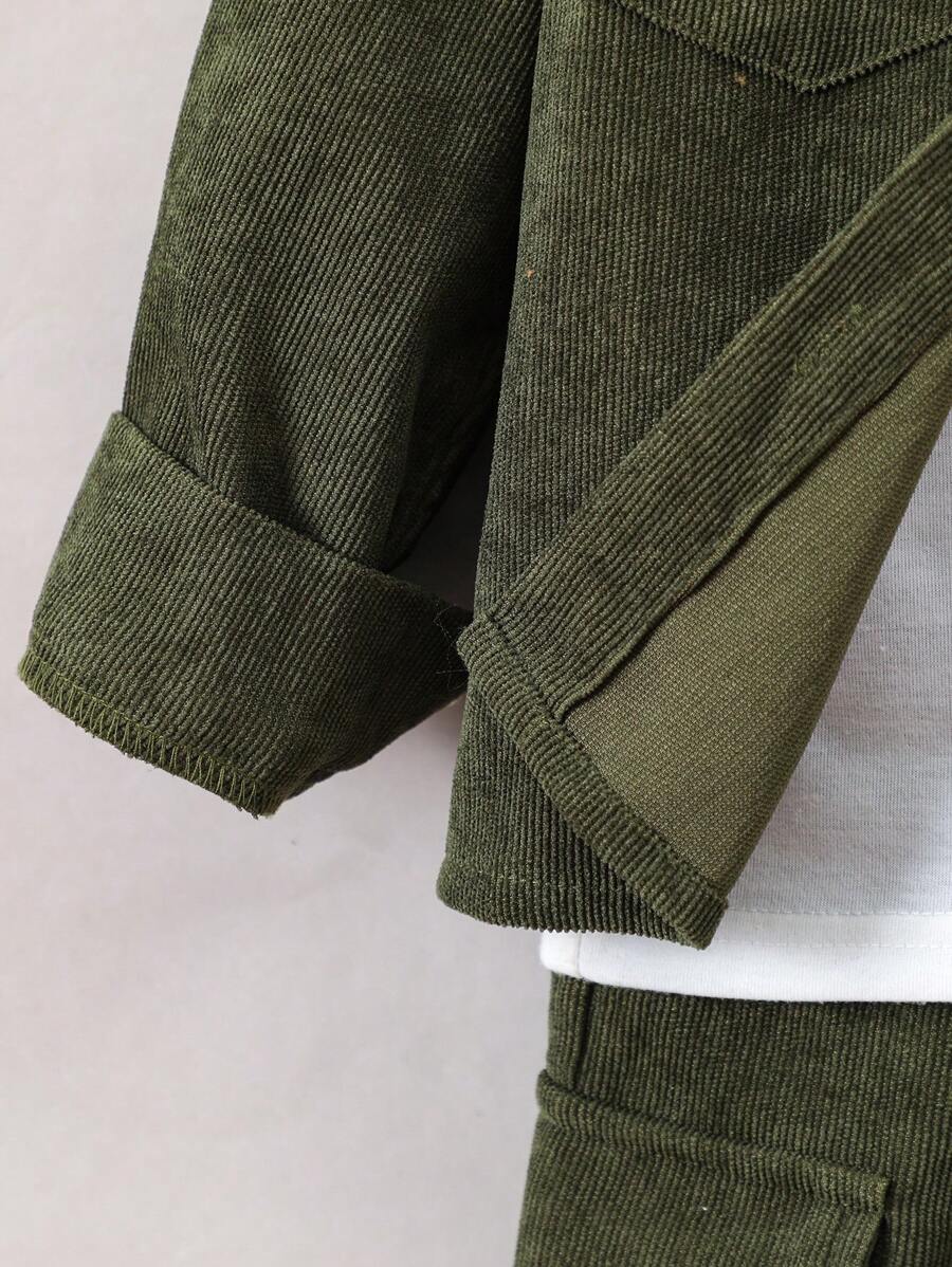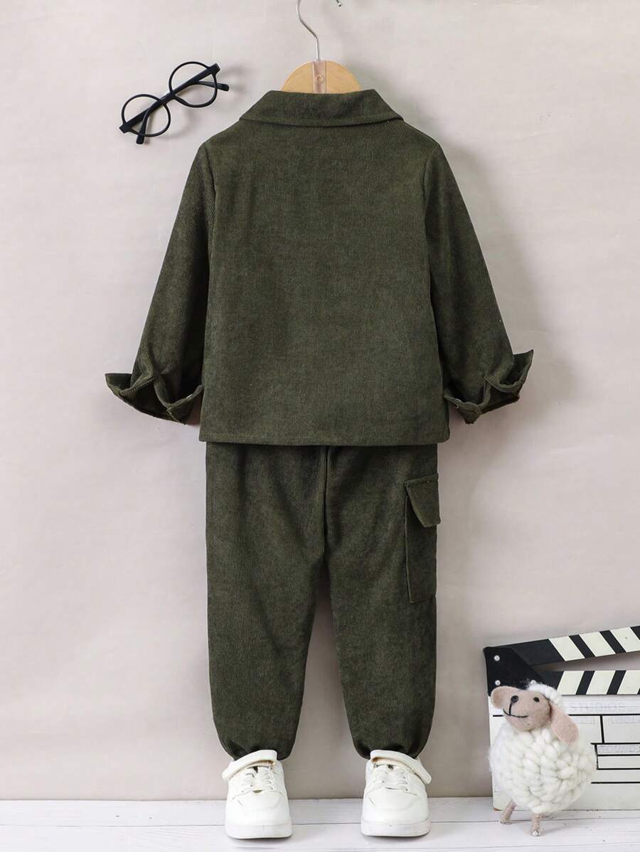 / SHEIN Young Boy Flap Pocket Shirt & Pants Without Tee Green Baby Boys Sets